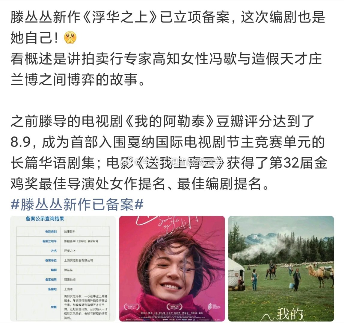 🍉🍉《浮华之上》赵丽颖➕于适女导演滕丛丛的🍪,这是🍅继《我的阿勒泰》后和