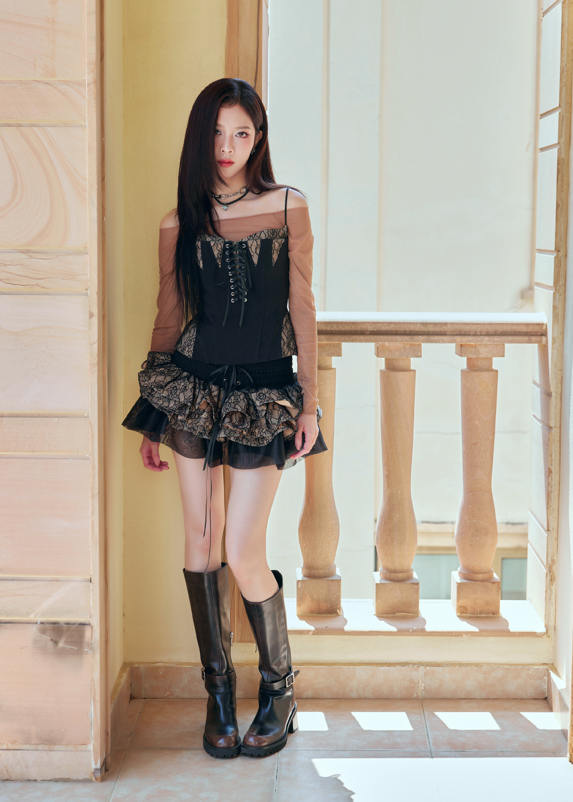 宋妍霏,长发裙装美腿穿搭柔美气质。宋妍霏