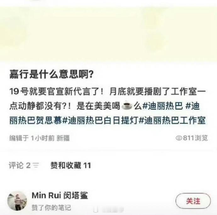 闵塔鲨点赞吐槽嘉行和迪丽热巴工作室的博文,哈哈哈哈哈
