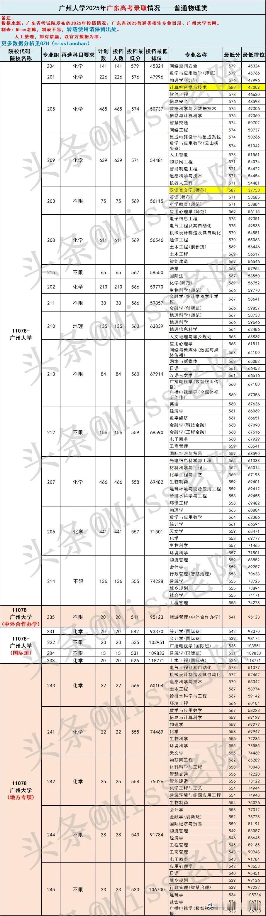 以下为广州大学2025年广东高考本科批普通类专业的录取情况,图①为历史类,图②为物理类,给意向报考广州大学的2026届广东高考生作为报考参考。