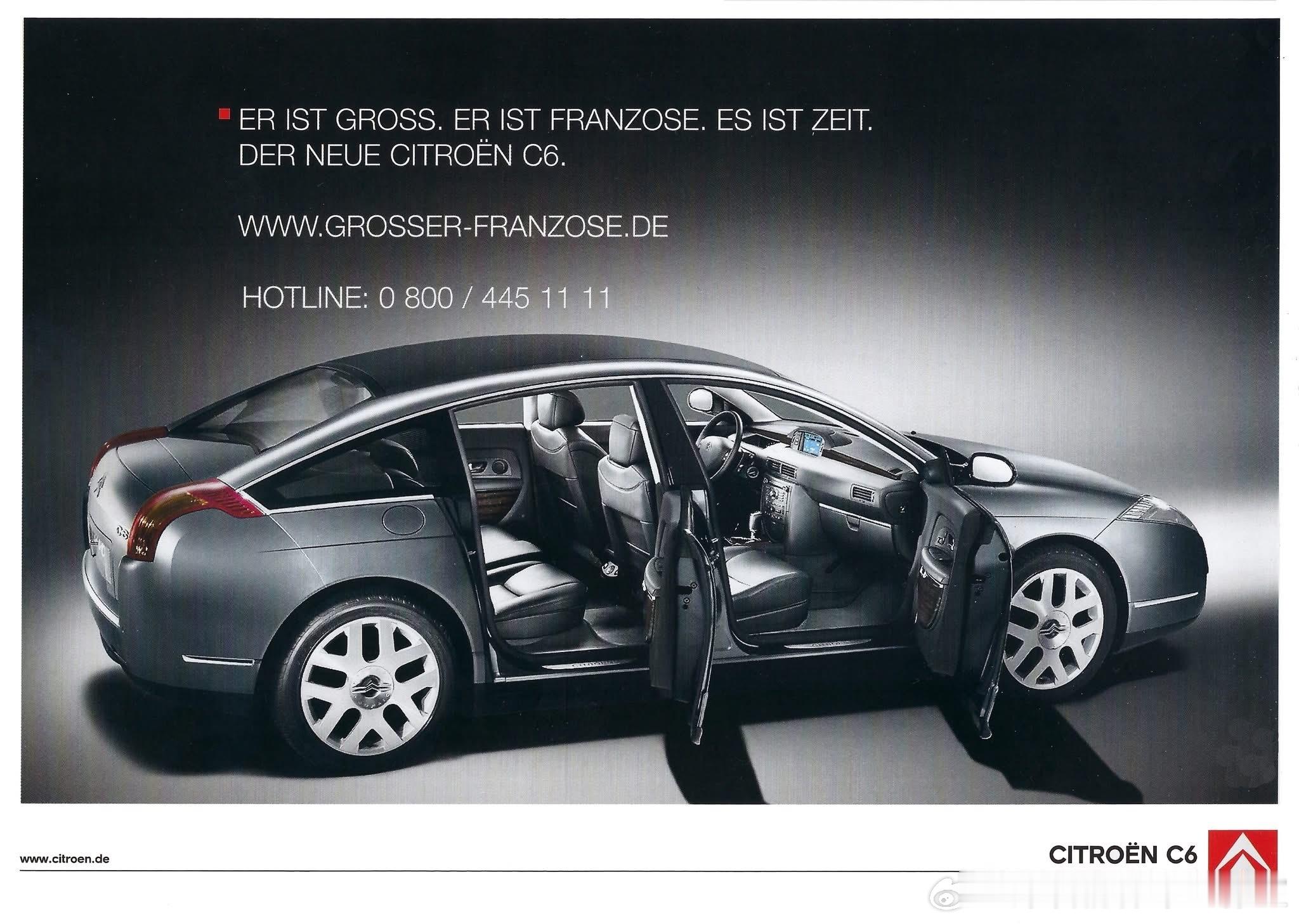 雪铁龙C6(初代,2005-2012法国产),与2016年后东风雪铁龙的C6是国内特供版(东风A9换标)无直接关系。1999年日内瓦车展发布C6 Lignage概念车,原定2000年底量产接替旗舰XM;因PSA优先推进标致607,项目延迟至2005年11月正式投产(法国雷恩工厂),基于PSA PF3平台(同C5/407),设计由Jean-Pierre Ploué主导,保留CX式凹面后窗的快背造型,非掀背而是传统三厢。1.这代C6是Euro NCAP 行人保护四星级开创者,全球首款在行人测试中获四星的量产车;引擎盖碰撞时自动上抬,增加缓冲空间,大幅降低行人头部伤害,成为后续车企被动安全设计标杆。2. 液压悬挂巅峰+智能驾驶辅助早期普及:标配Hydractive III+主动液压悬挂(可电子调软硬/车高);同时搭载HUD抬头显示、车道偏离预警、随动转向氙气大灯、车速/制动联动自动尾翼,是21世纪初行政级车电子配置的先行者;Top Gear曾用它在颠簸赛道测试,稳定性显著优于同期宝马5系。3. 法国总统座驾:希拉克(2005-2007)、萨科齐(2007-2012)均将C6作为爱丽舍宫官方用车;希拉克甚至在量产前就用预产车,强化其“法兰西旗舰”的政治符号。4. 雪铁龙传统豪华旗舰的谢幕之作:是最后一款纯粹雪铁龙基因的大型行政车(后续高端由DS品牌承接,DS9为精神继任);它坚守液压悬挂+舒适取向,拒绝盲目跟风德系运动化,成为雪铁龙黄金时代旗舰的收官。权威数据:总产量23,384 台(法国雷恩工厂,2005.9–2012.12),其中中国进口约 800–1,000 台,实际进口数据应该更少。雪铁龙雪铁龙