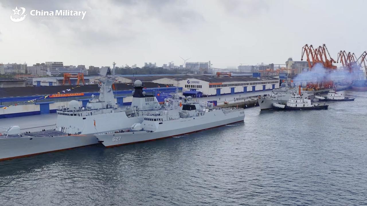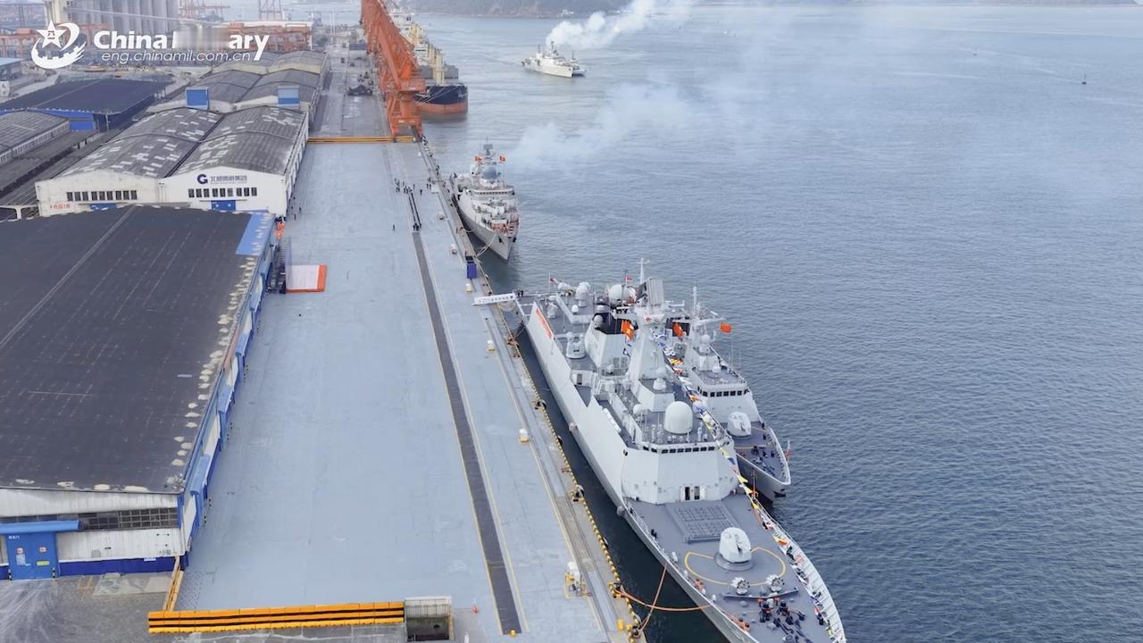 这是日本横须贺海军基地,画面中的是日本海上自卫队的3艘主力驱逐舰,最左边的是摩耶