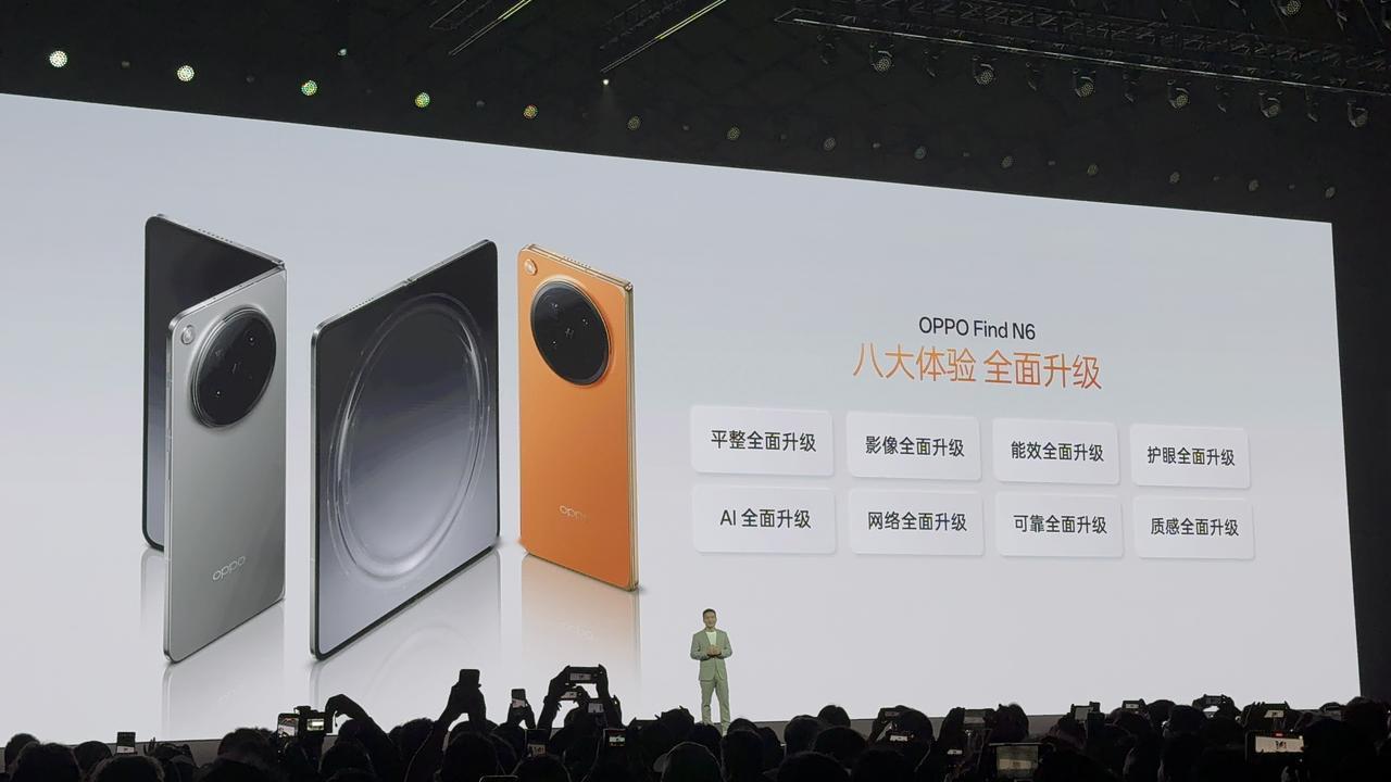 OPPO Find N6正式发布,12GB+256GB为9999元,16GB+512GB为10999元,16GB+1TB卫星通信版11999元,比上代涨价1000元。OPPO Find N6 升级亮点: T0级折叠平整度,屏幕折痕超平整 第五代骁龙8至尊版(七核) 6000毫安时电池,80W有线充电 哈苏2亿像素主摄 支持66个网络频段 全景自由窗再升级,新增支持AI手写笔