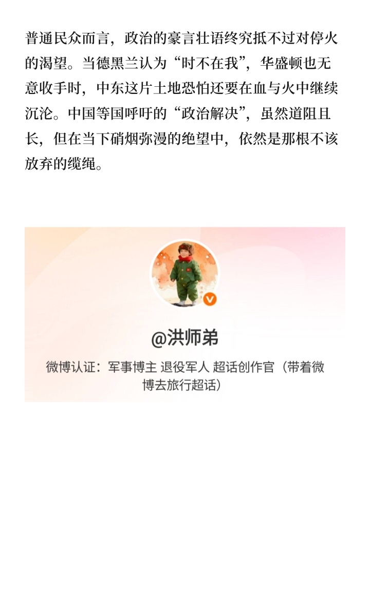 然而,“必须击败并赔偿”的战争目标固然提气,却也意味着和平的遥遥无期。对于深陷冲突漩涡的普通民众而言,政治的豪言壮语终究抵不过对停火的渴望。当德黑兰认为“时不在我”,华盛顿也无意收手时,中东这片土地恐怕还要在血与火中继续沉沦。中国等国呼吁的“政治解决”,虽然道阻且长,但在当下硝烟弥漫的绝望中,依然是那根不该放弃的缆绳。国际局势 伊朗最高领袖驳回斡旋提案