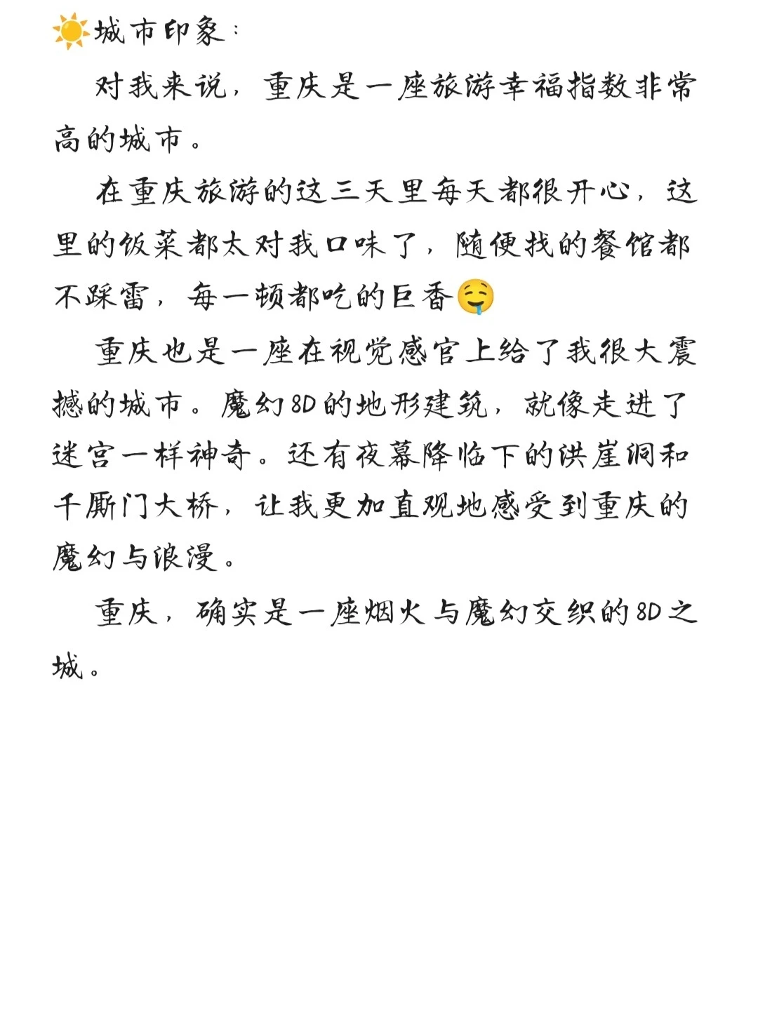 ☀️去年暑假来到了重庆,品尝了麻辣鲜香的重庆火锅,感受了山城的魔幻与浪漫。