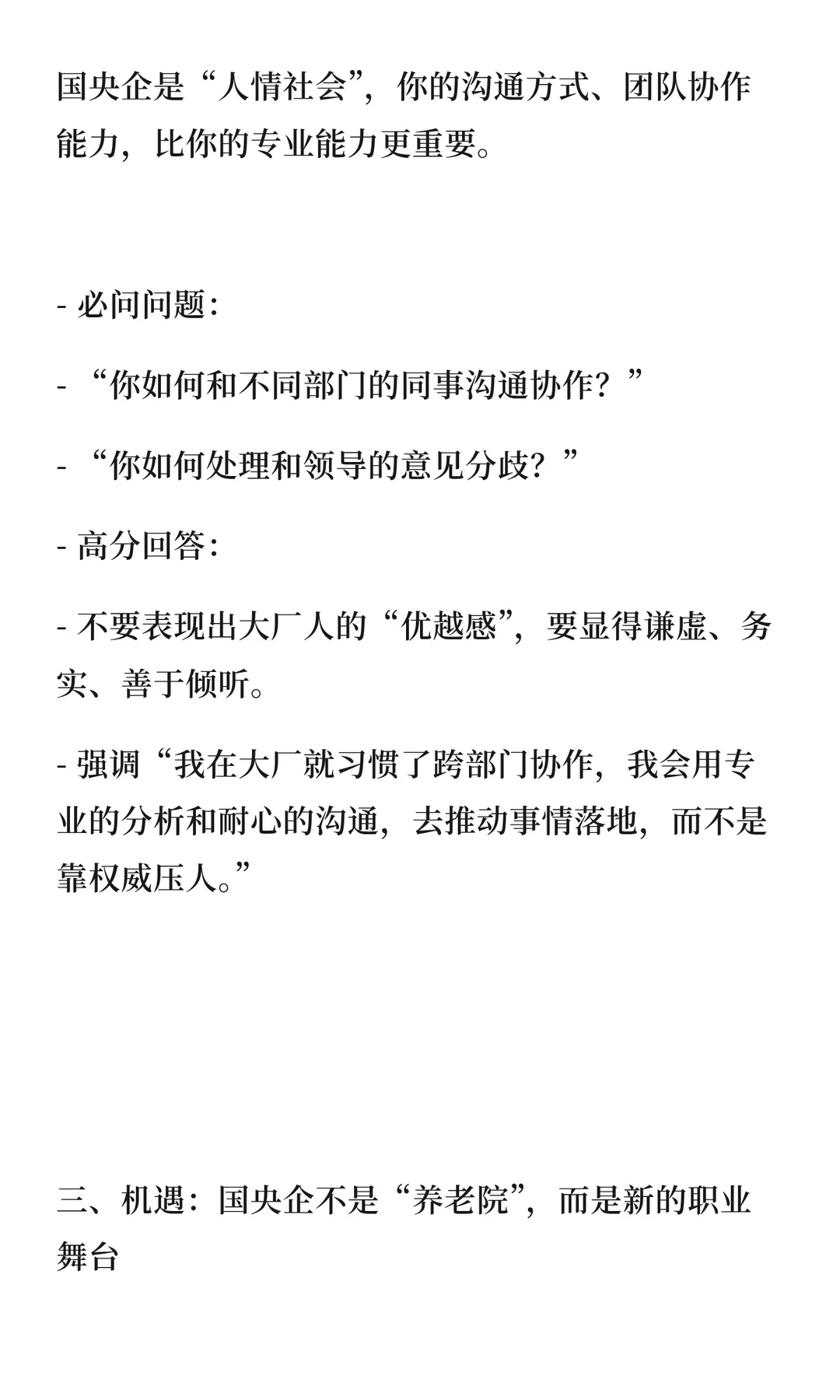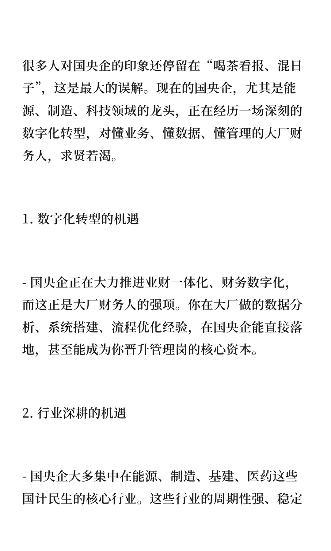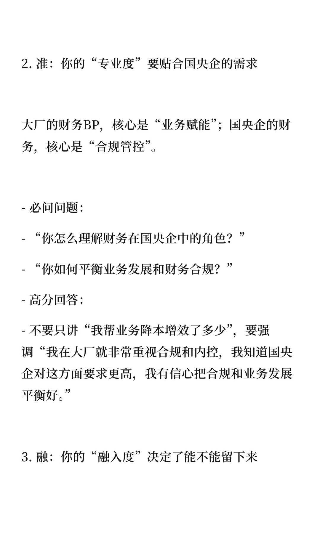 大厂财务人跳槽国央企需调整策略:28-32岁瞄准央企岗位,33-35岁争取管理岗,35岁以上考虑专业岗。面试强调“稳、准、融”,国央企看重稳定性、专业度和融入度。国央企提供长期职业平台,适合积累经验和管理经验。