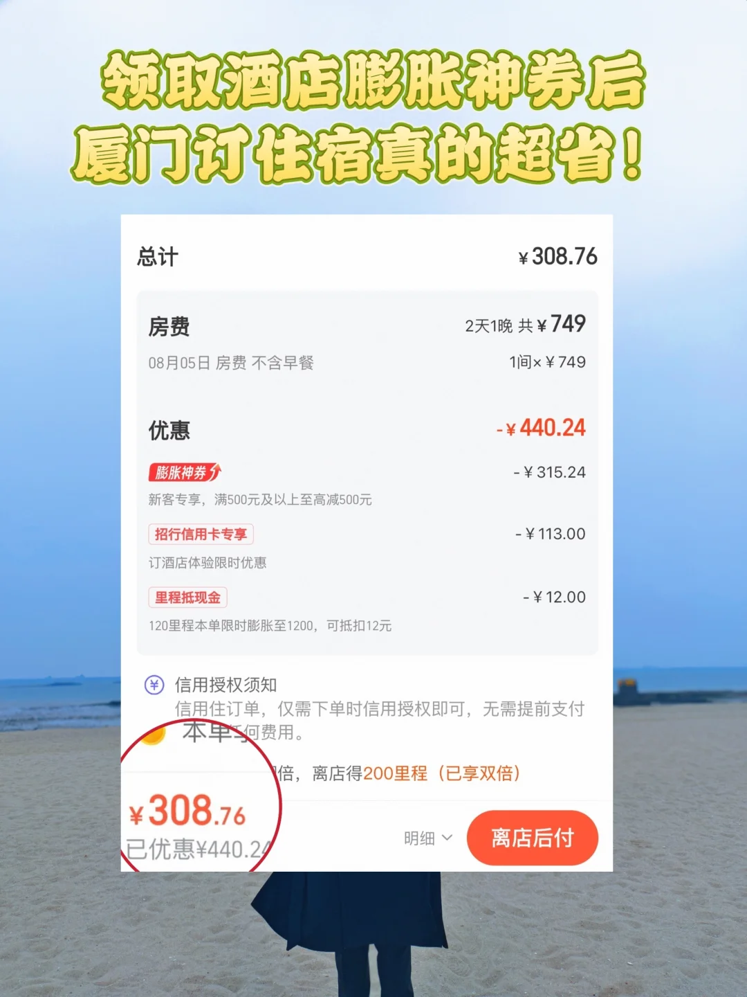 叠加酒店膨胀券后订厦门的酒店直接省了好几百💰