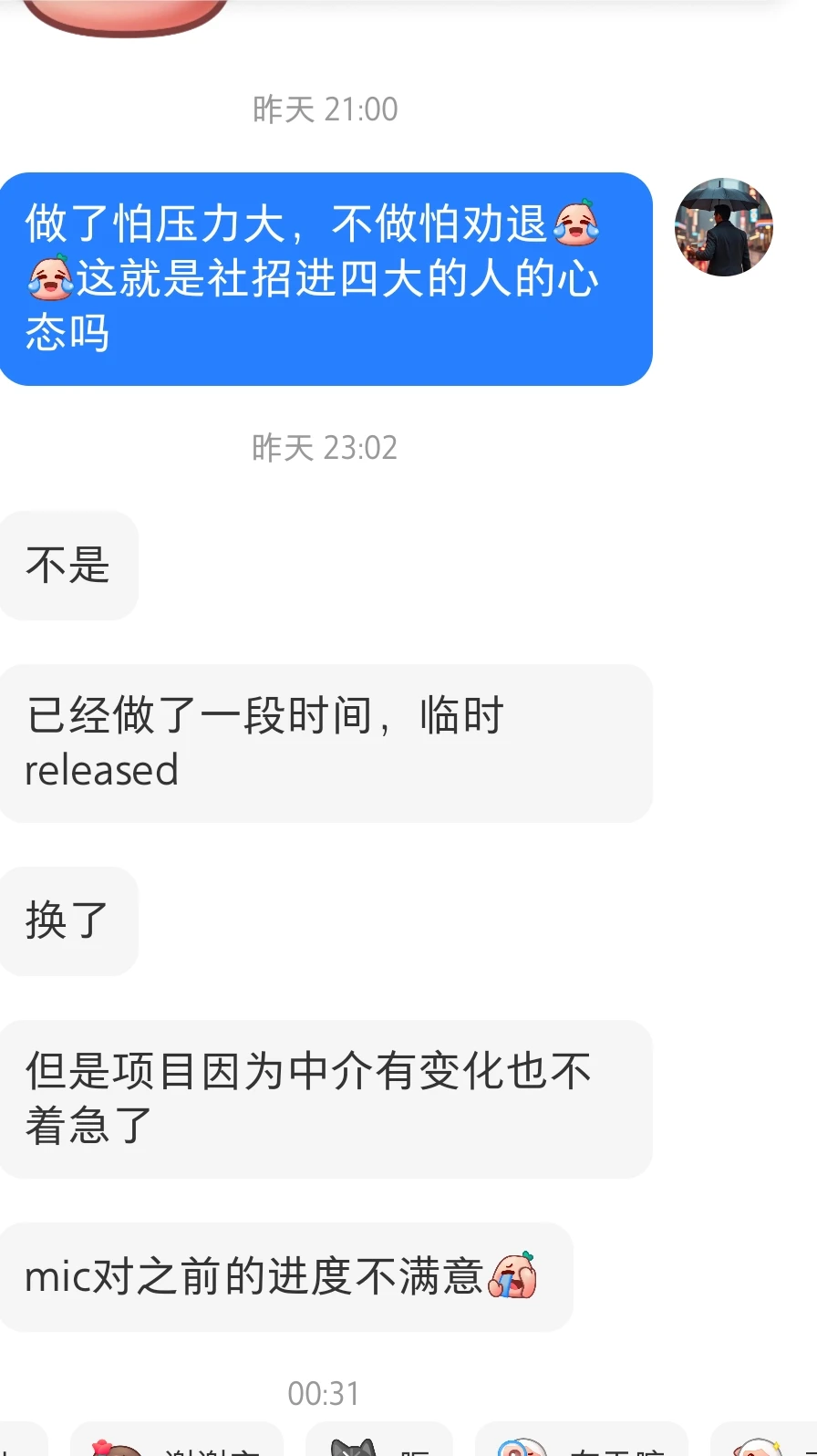 做了怕压力大,不做怕劝退[笑哭R][笑哭R]这就是社招进四大的人的心态吗,特别是s2级以上的人员的心态。