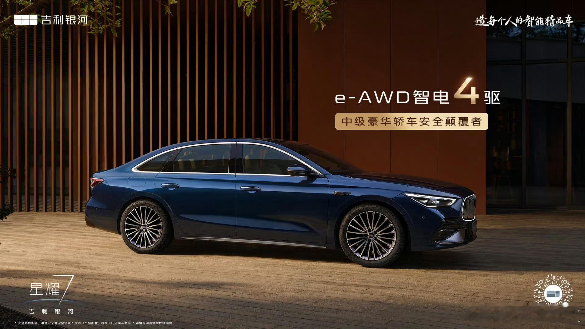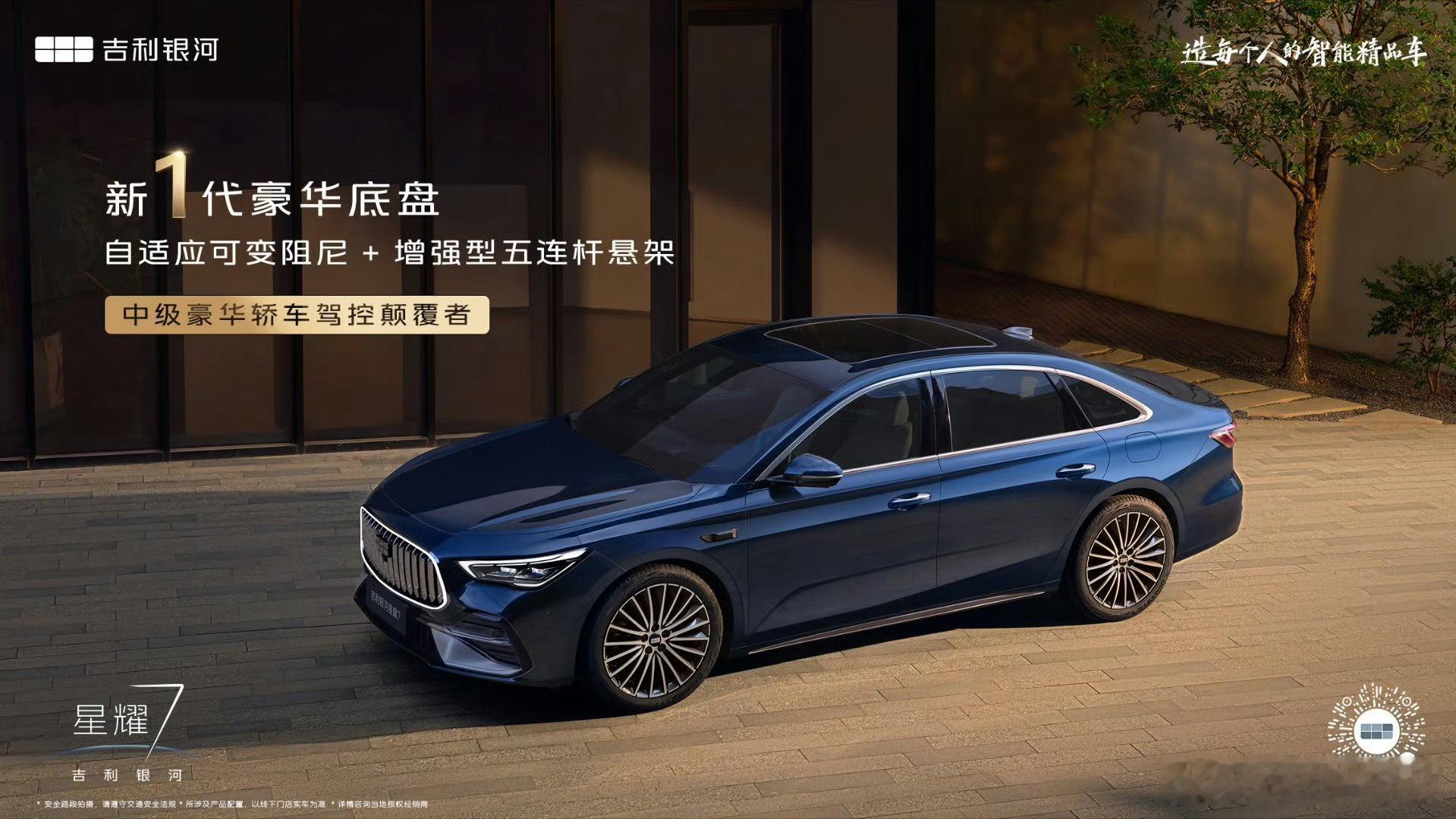吉利银河星耀7发布 3月17日,吉利银河星耀7官图正式发布。新车为全新插混轿车,定位介于星耀6与星耀8之间,填补产品空白。外观延续银河涟漪美学设计,配备可发光直瀑式格栅、三段式大灯、贯穿式尾灯及溜背造型,车身尺寸4958/1915/1505mm,轴距2852mm,比星耀6更大。内饰采用环抱式座舱,大面积软包、浮雕打孔座椅、水晶件与256色氛围灯,质感突出。智能与动力方面,搭载千里浩瀚H3智驾、雷神AI电混2.0(1.5L+双电机),综合功率312kW,峰值扭矩526N·m,零百加速5.4秒,匹配e-AWD智电四驱、五连杆悬架及自适应可变阻尼系统。
