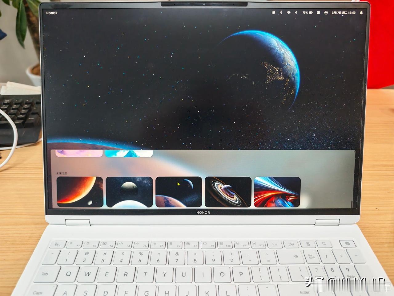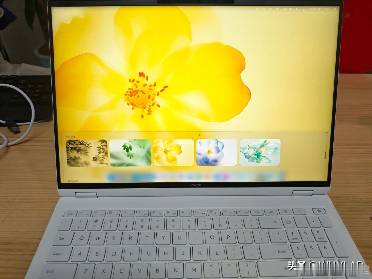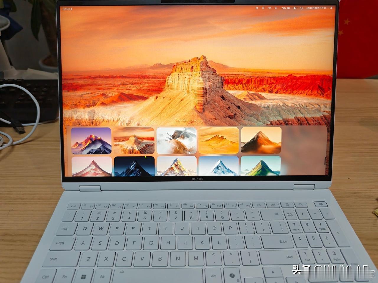 荣耀 MagicBook 全新 AI UI 实机效果展示:毛玻璃特效,悬浮 Dock 栏,右上角状态栏,很有 macOS 神韵。 不过底层应该还是 Windows?不知道这 AI UI 还有什么新玩法?[吃瓜群众] ps.这台是用了新模具的 MagicBook Pro 16,IPS 屏幕。键盘布局也变了。