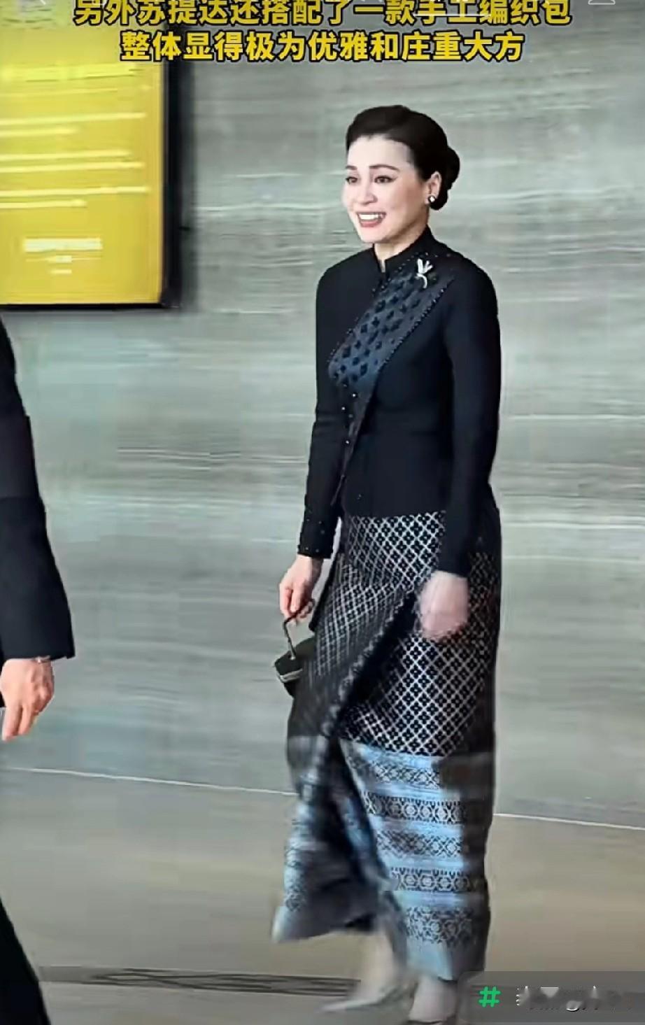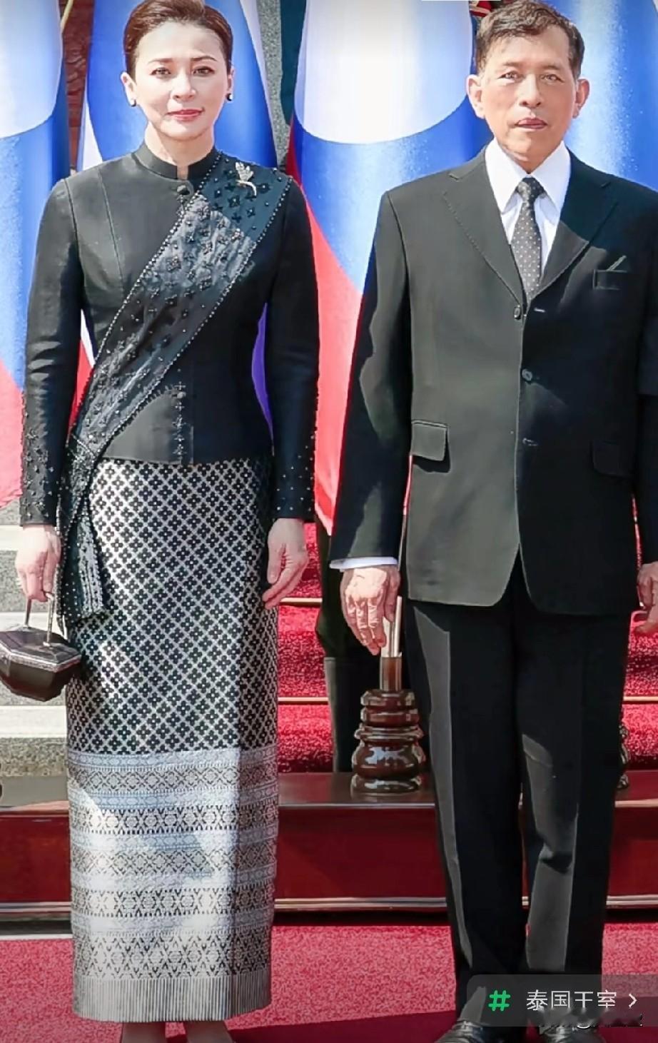 苏提达王后随泰王出访老挝,两天内换穿的两套服装都很美。 泰王气质非凡, 雍容华贵,高贵优雅 。