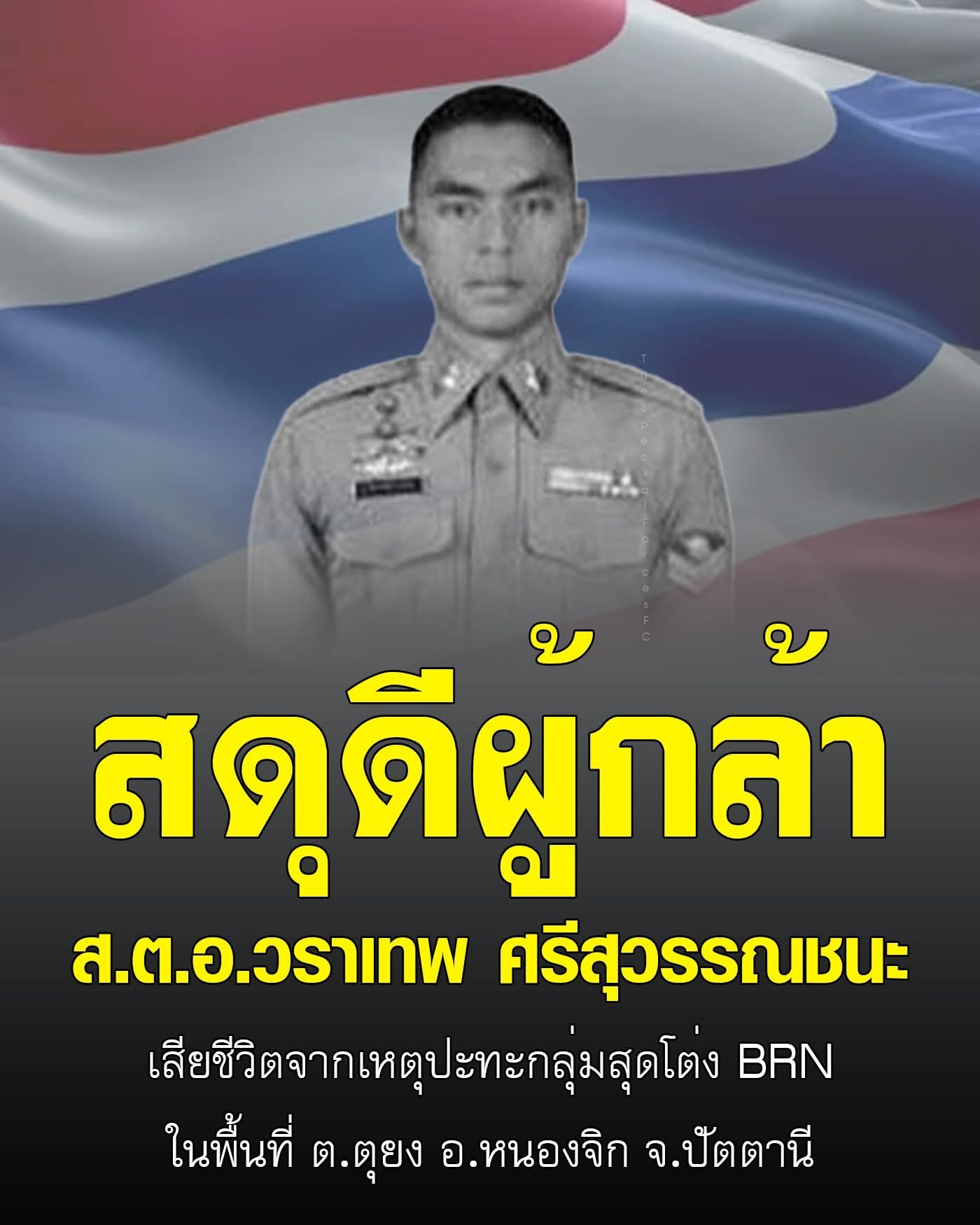 泰国第四内部安全行动指挥部(ISOC Region 4)发言人公布了在北大年府农芝县Tuyong街道6号村Ban Takong开展的执法行动结果。军方、警方和当地行政部门联合行动,对一处疑似藏匿叛乱分子的区域进行搜查。行动期间,警员试图与嫌疑人谈判,促成其和平投降,但嫌疑人开火,双方发生枪战。局势已得到控制,一名叛乱分子被击毙,身份核实为来自北大年府农芝县的34岁男子瓦阿里,并缴获一支M16步枪。调查显示此人涉嫌2016年至2023年间在北大年府发生的多起暴力袭击事件,已被通缉七次。 边防巡逻警察第43分局SOU分队长Warathep Srisuwanchana中士不幸面部中弹,后在北大年医院不治身亡。烽火问鼎计划武器装备军迷天地