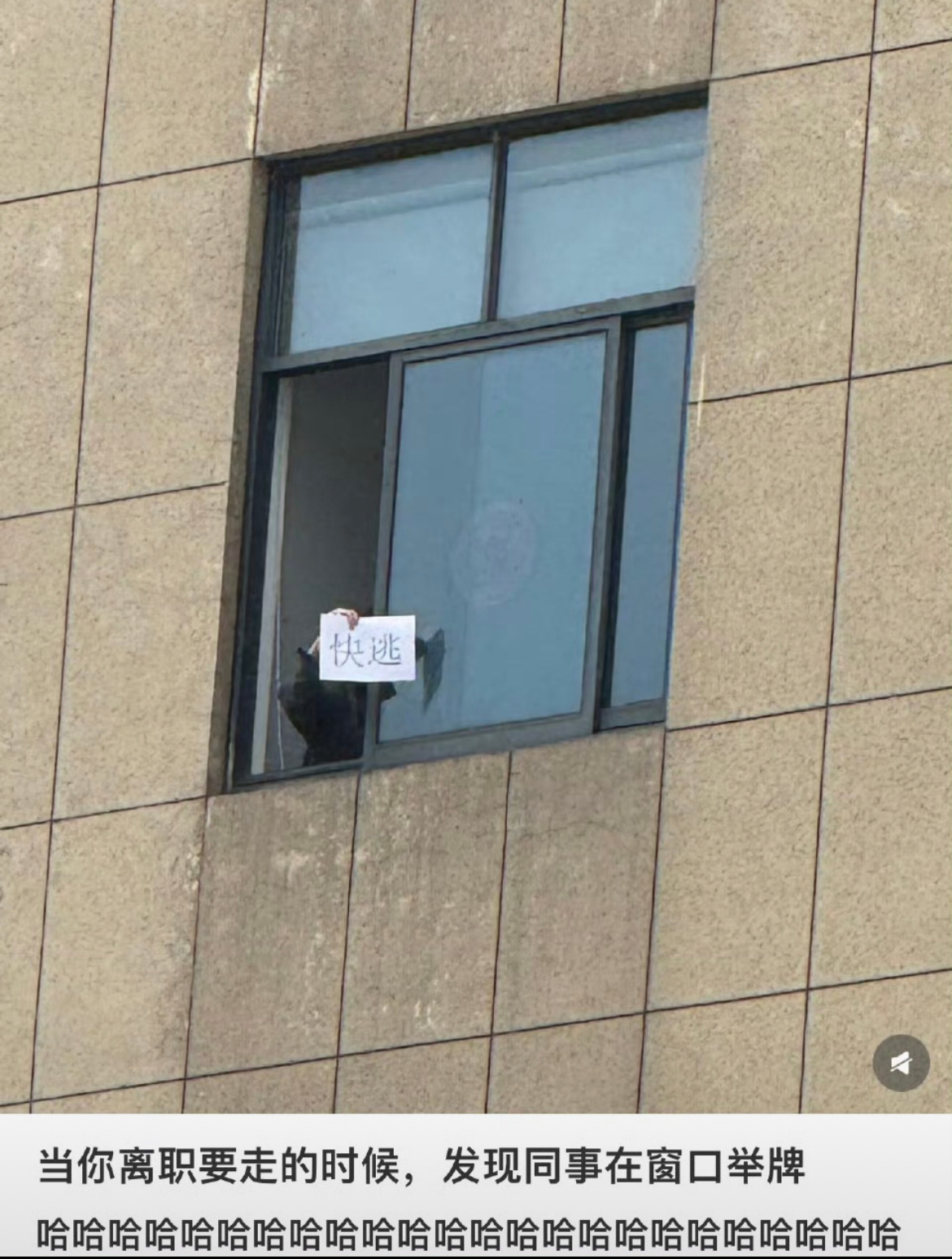 离职要走发现同事在窗口举牌 这就是艺术源于生活啦,我记得有个同款表情包对不!?而且感觉现在的环境一个好的上班搭子走了,不亚于一场断崖式分手