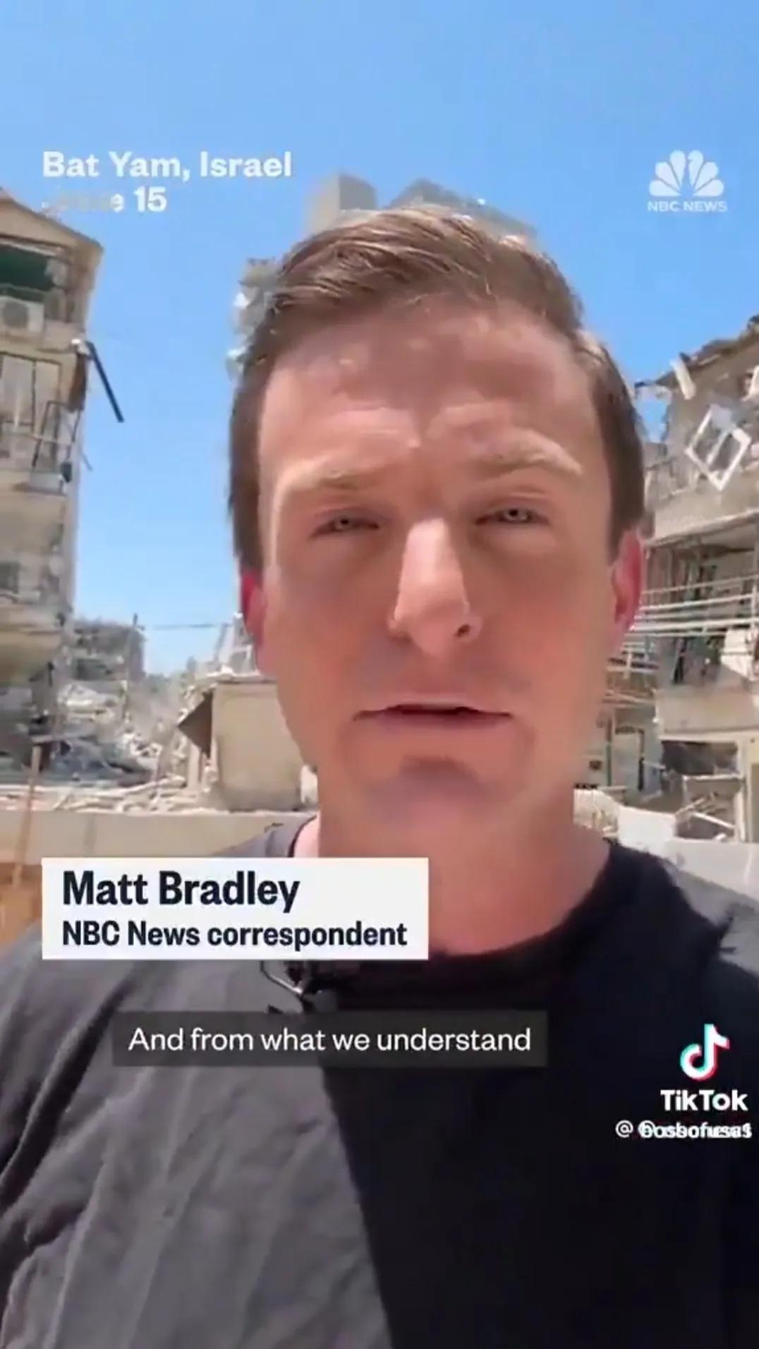亲以色列的美国NBC新闻派出记者马特·布雷德利在特拉维夫以南古什丹都市区的巴特亚
