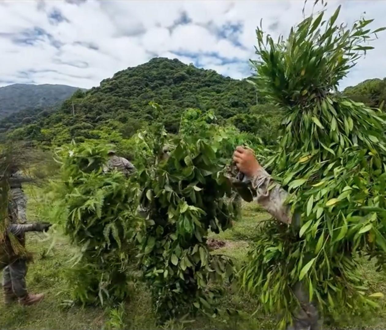 少见植物伪装海特这隐蔽战术现在难得一见,吉利服有时候不如大自然的植被的。看样子电