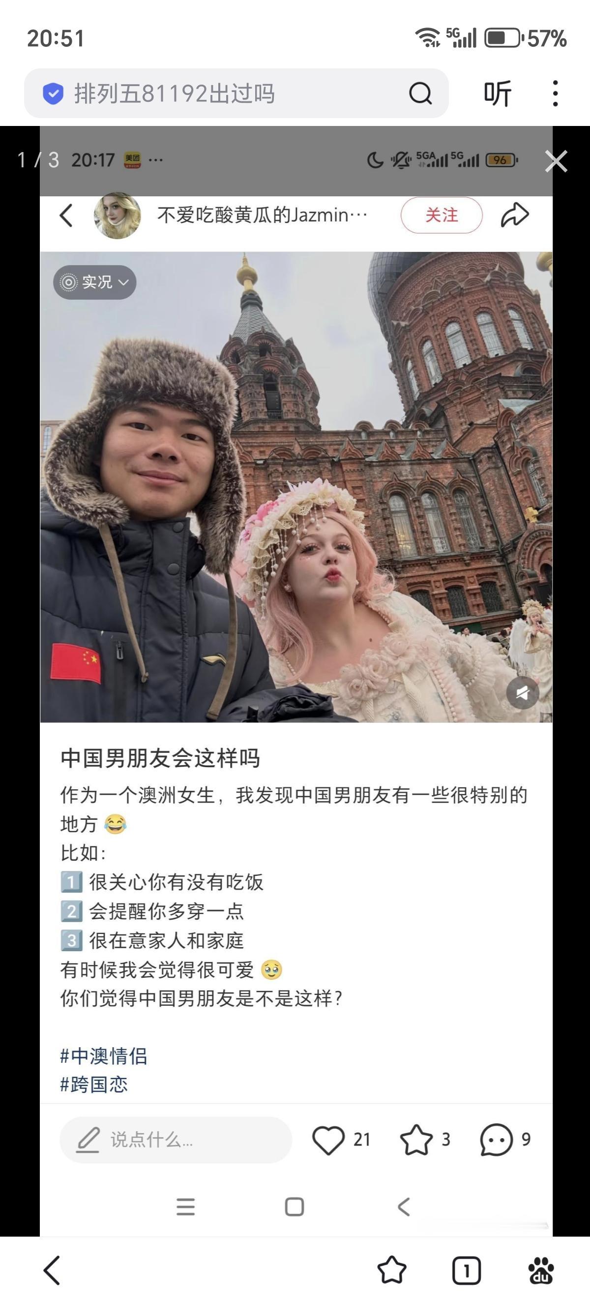 澳女称赞中国老公体贴,评论区有人阴阳怪气,点开主页后释怀了——外嫁三哥的