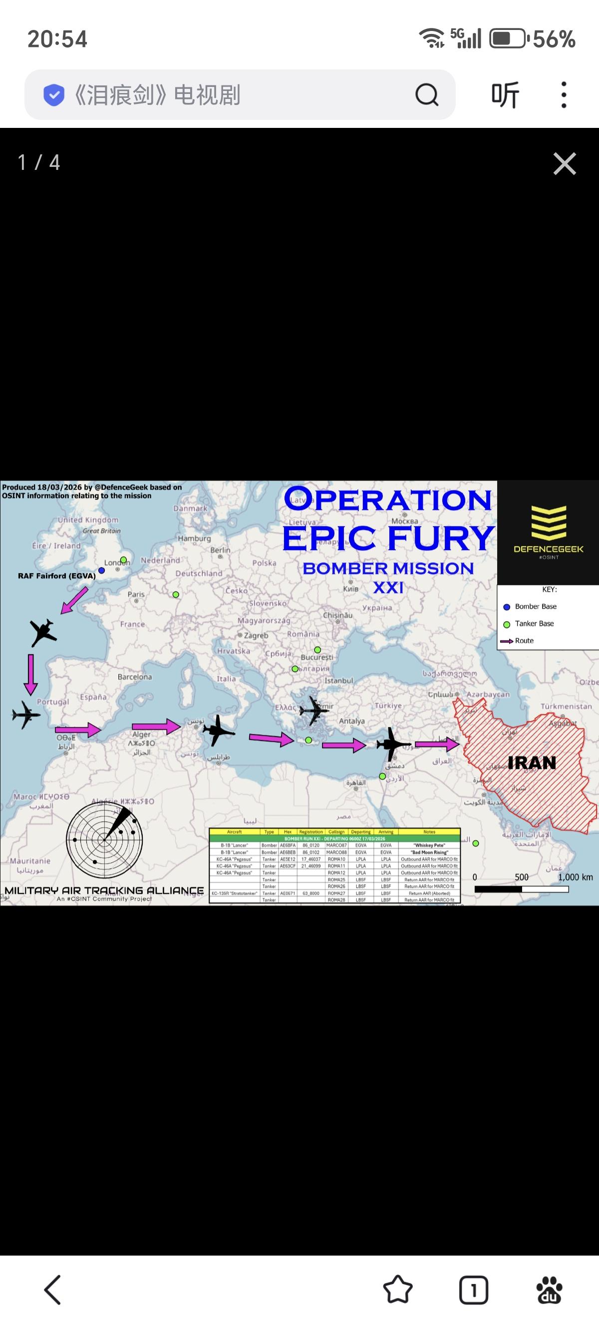 美军轰炸机队的问题很大啊。 2026 年 3 月 17 日,美国驻费尔福德皇家空军基地(EGVA)的 B-1B 轰炸机编队试图执行两次针对伊朗的轰炸任务,计划均经由大西洋和直布罗陀飞行,并由拉日什空军基地的加油机提供支援。 第二十一号任务顺利启动,在返航时遇到问题:一架从索非亚(LBSF)起飞的加油机起飞后因疑似增压故障被迫中止任务。 第二十二号任务自启动阶段便故障频发。由于另一架 B-1B 轰炸机(RESIN9? 86-0138 AE6C09)出现问题,最终仅以单机“RESIN97”的配置起飞,但这架单机出战的 B-1B 轰炸机也在升空不足 8 小时后因自身故障被迫中止任务、折返费尔福德基地。 此外,这些美军 B-1B 在抵达战区前大都以可以被多点定位技术进行追踪(MLAT)的状态飞行。 如果将打伊朗视为美军在西太作战的相关行动预演的话,这个状态,美军怎么来西太