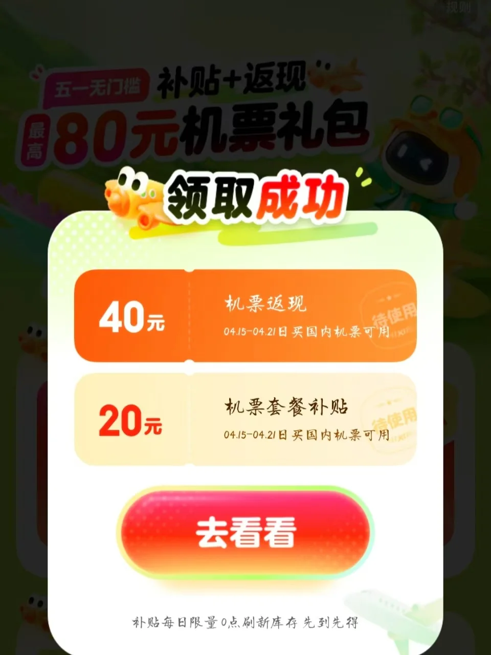 ✈️五一计划去内蒙古乌兰察布玩 早早把攻略做好之后就开始蹲过去的机票了 蹲了好几天了价格都不合适…… 这两天的价格相对于前几天降了三四百 想订但是又怕后面临期还会降低 这几天订的话还可以用智行的机票补贴 我刚领了因为是老客户总的是60,20补贴和40返现 省个几十可以在内蒙加一斤烤羊肉🍖 大家给我出个主意!是现在订还是等下周在订?