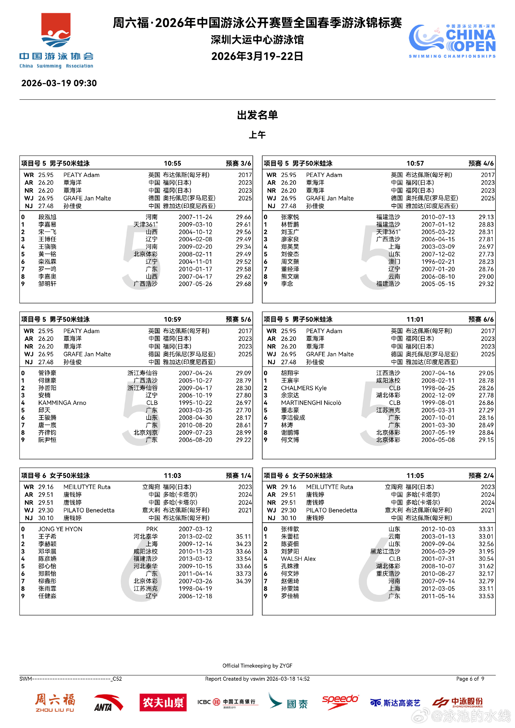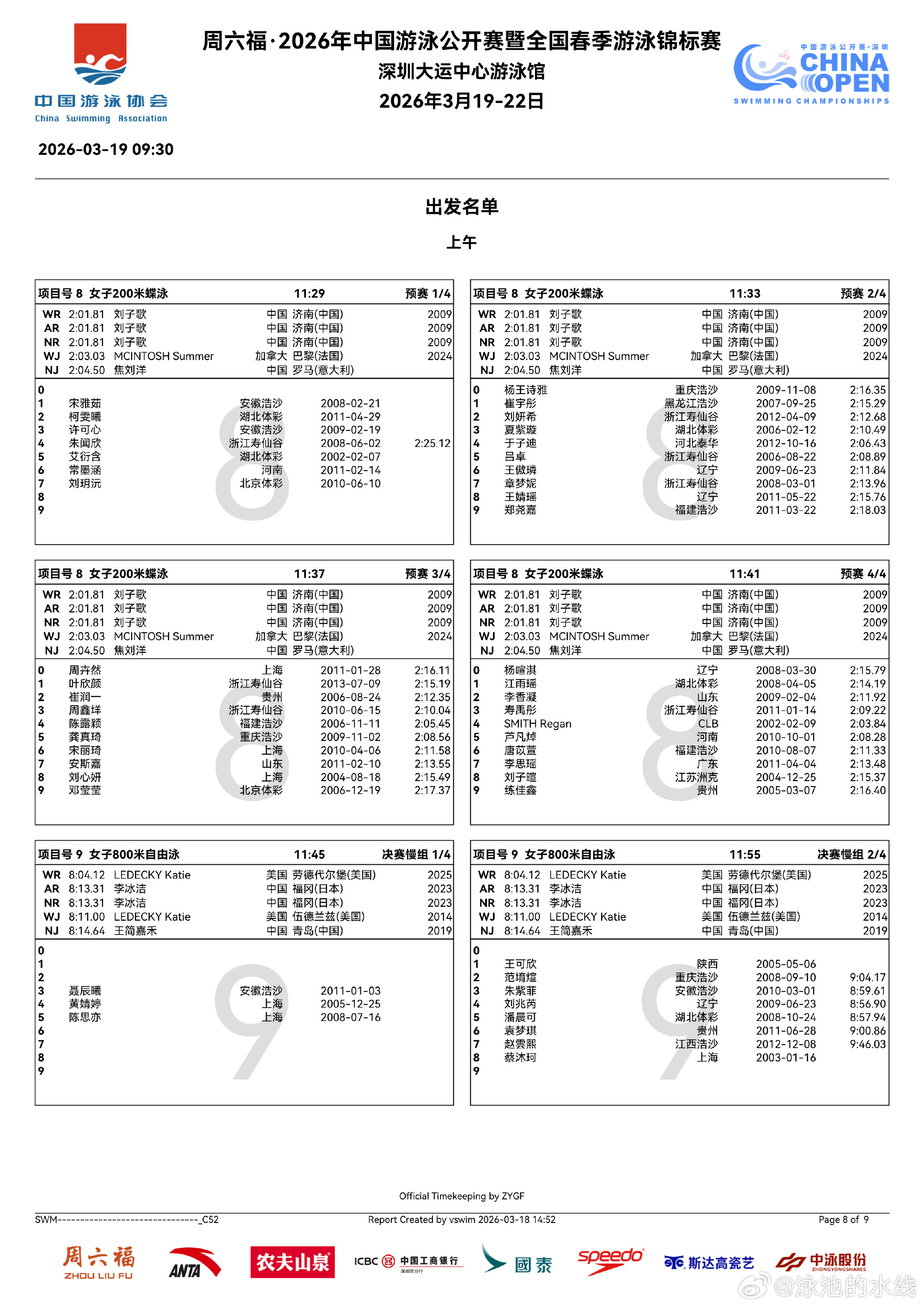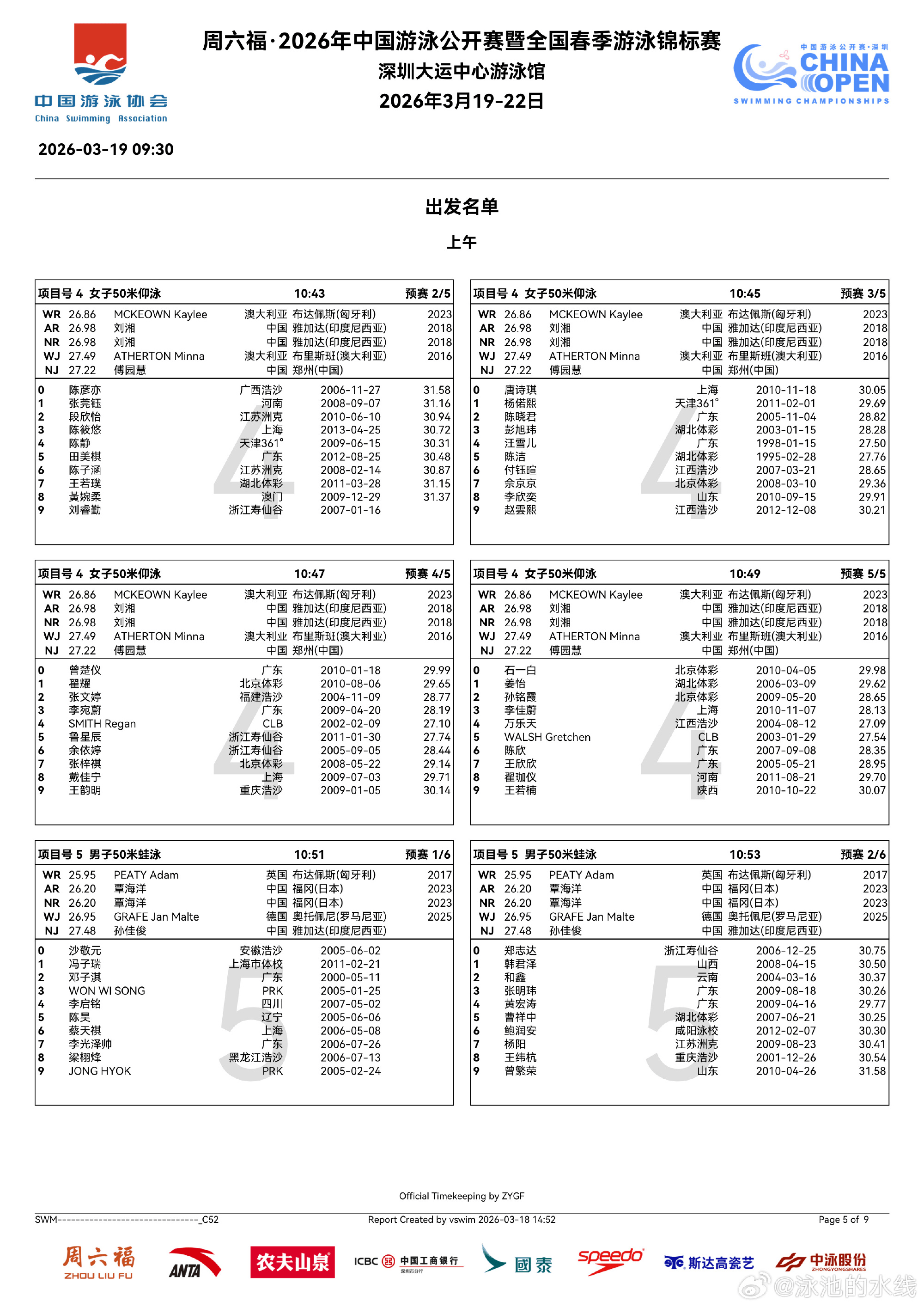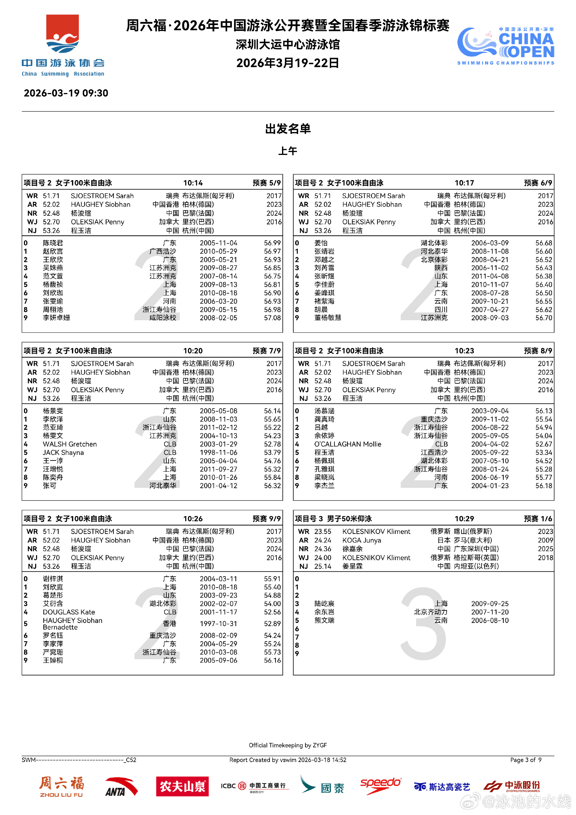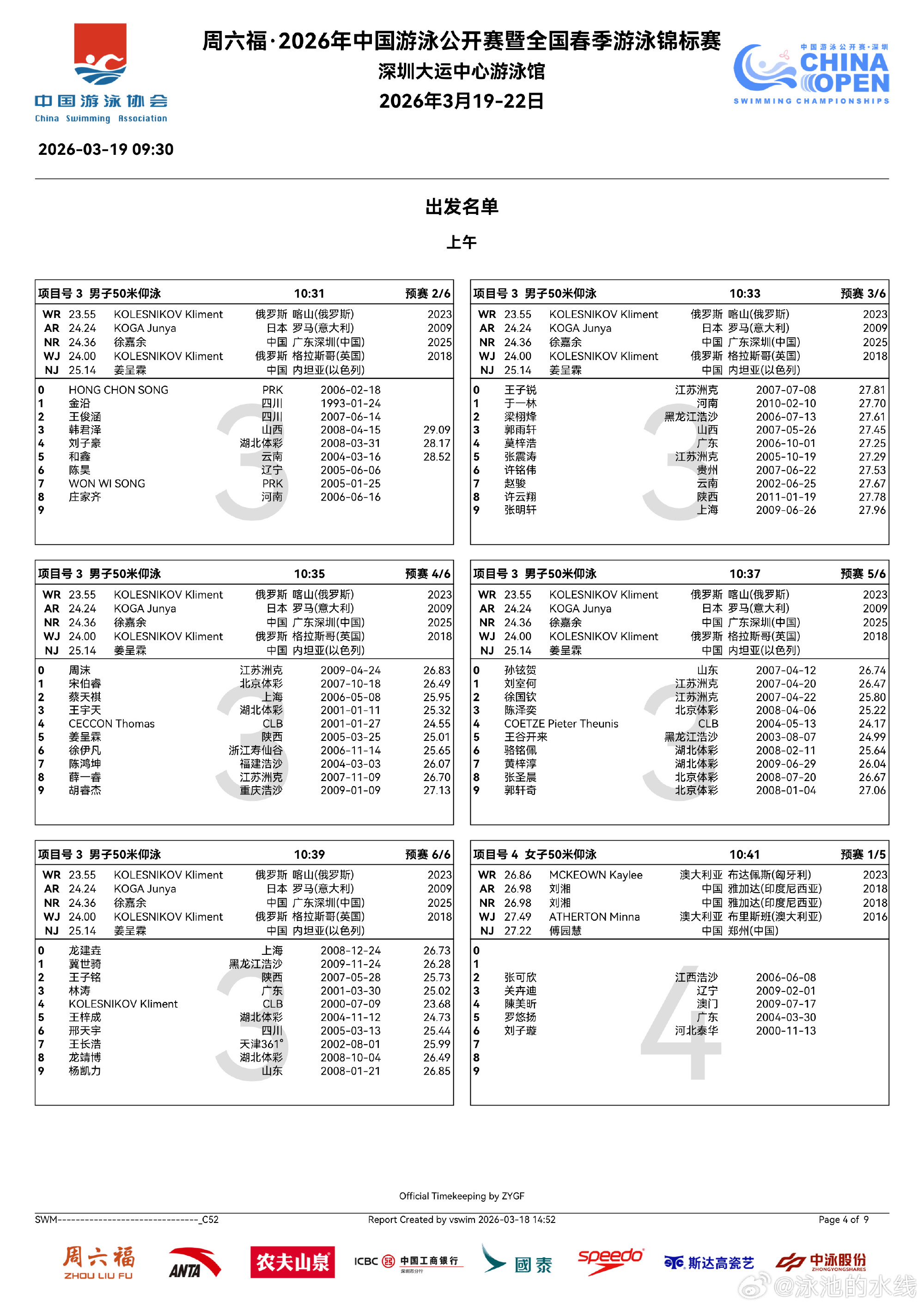 虎扑03月19日讯2026年中国游泳公开赛暨全国春季游泳锦标赛将在明日拉开帷幕。