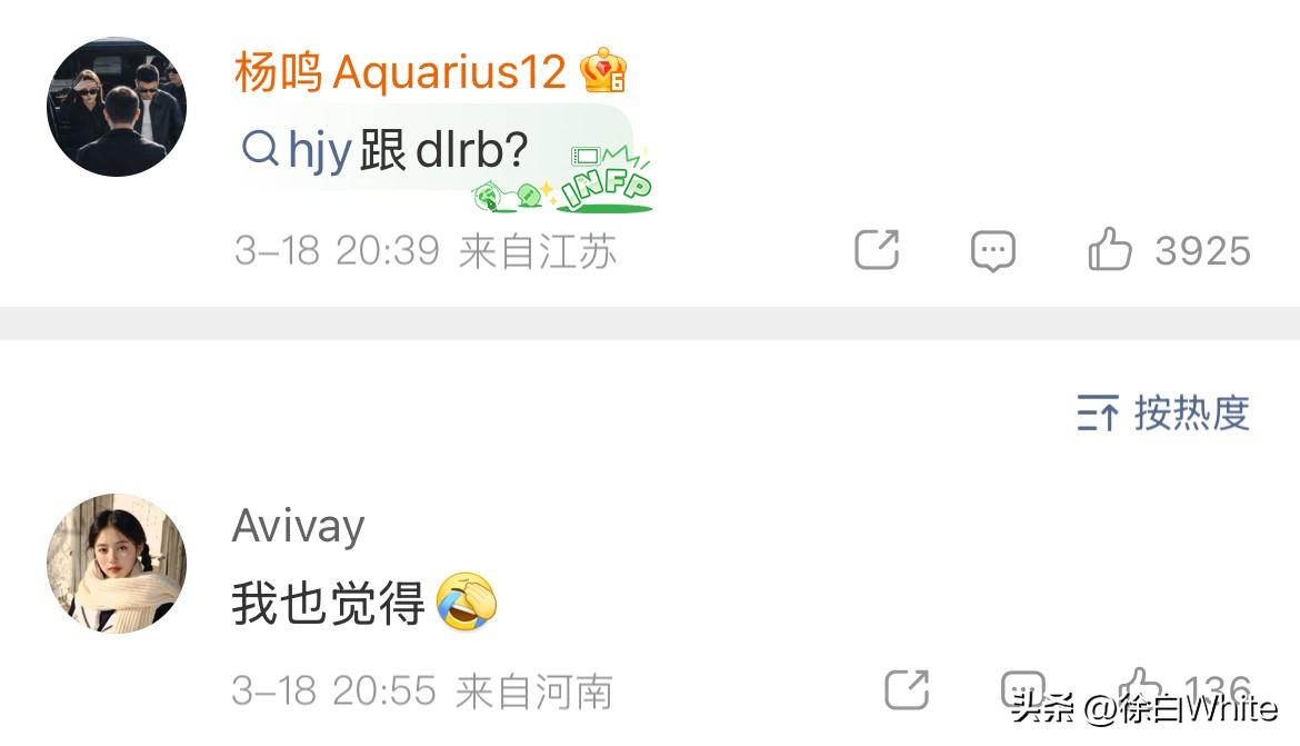 3月19日,最近内娱在压什么事?怎么每天都有双顶流恋情消息?今天这对在一起六年,因戏生情,去年还被拍到了,因避嫌无二搭 拿顶流恋情去压的瓜应该很大吧,最近看热搜,基本都是各种感情瓜,有的人辟谣,有的人不说话,还有的人跟着一起吃瓜! 娱记一天说一个或者好几个艺人的瓜,天天上热搜,也是醉了,有种带着任务来的,要转移大众注意力的感觉,说完你的,说你的,实质性消息一点没有,全是空穴来风!