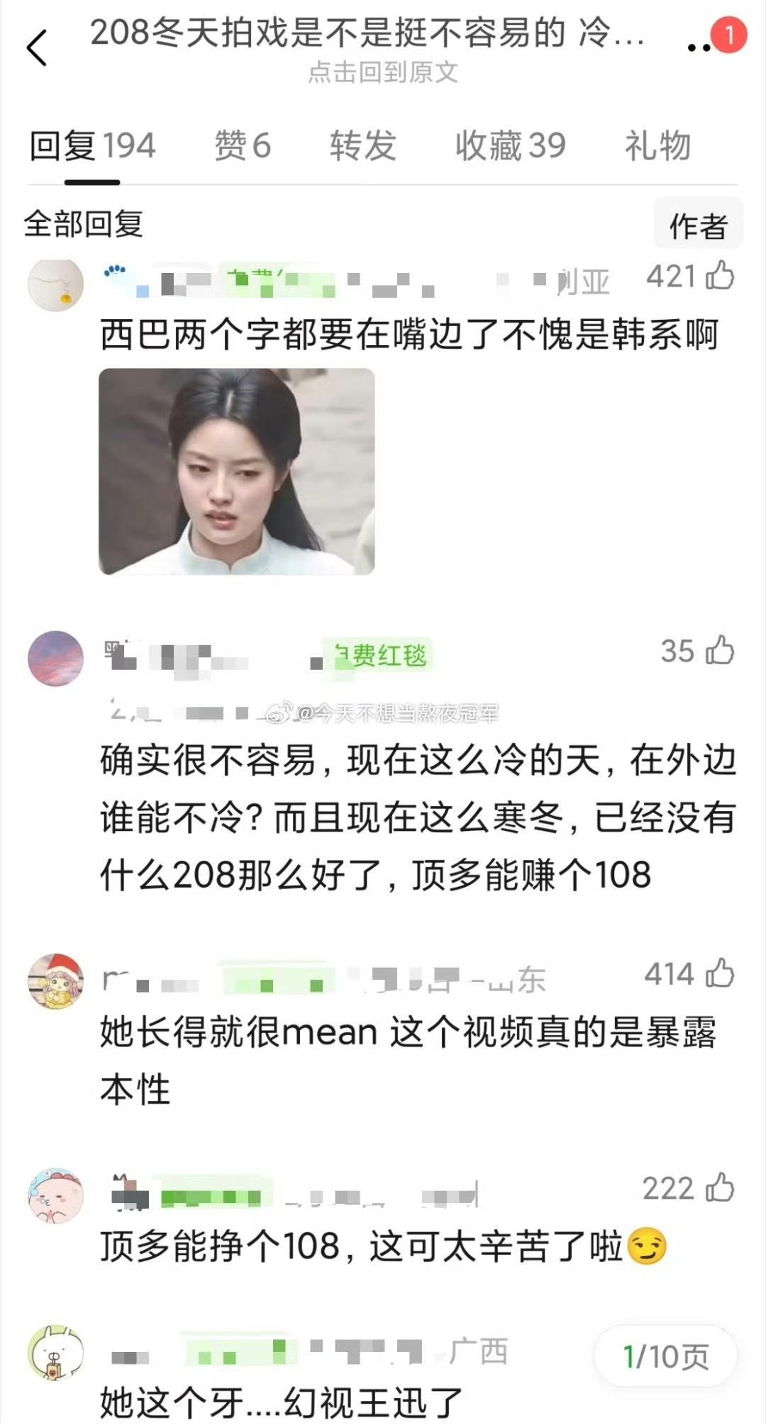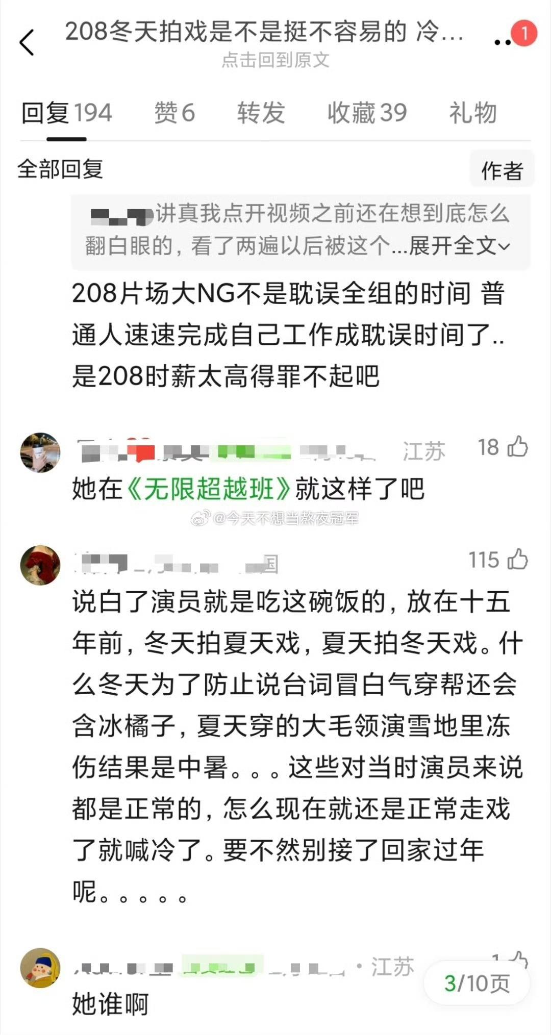又翻车!徐若晗片场挂脸,网友直接开怼 拍《玉簟秋》遇上零下低温,徐若晗穿薄戏服冻得受不了,对着工作人员频频皱眉催促,全程黑脸不耐烦,被网友抓包后直接建起高楼审判。有人说天寒地冻谁都难熬,也有人觉得拿高片酬就该扛住,情绪管理不到位还甩脸,实在不够专业。徐若晗 挂脸
