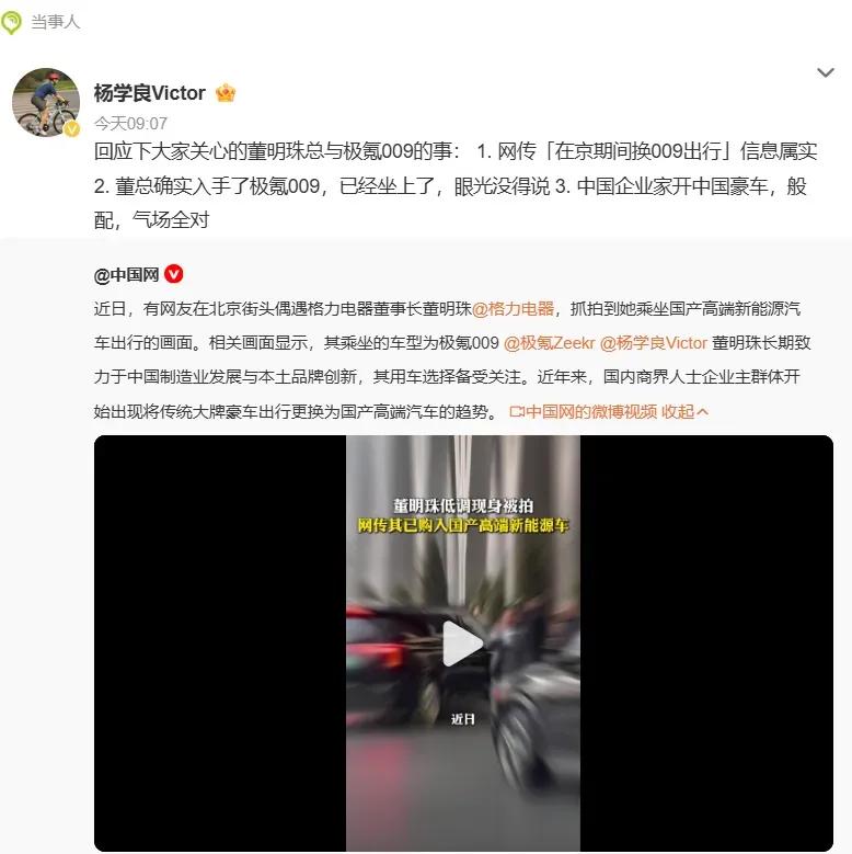 董明珠买国产豪车,李书福亲自交车,吉利这把赚大了。售价近90万的极氪009,董明珠一次就买了3辆,还带着格力员工又买了6辆。这么大的客户,难怪吉利老板李书福都亲自过来交车,董明珠在北京多次乘极氪出行被路人“偶然”拍到,这波顶级企业家带货国产豪车的示范效应,吉利可谓赚足了眼球。 吉利副总更是不吝赞扬,称董总确已入手极氪009,中国企业家开中国豪车,眼光没的说,够般配,气场全对。明眼人都听得出来,这话既是在拍董明珠马屁,更是抬高了吉利旗下豪车的身价,无形中喊话其他大佬,买车就得像董明珠这样,多看看国产豪车,一点不比奔驰迈巴赫弱。 其实这也不全是吉利在自吹,10年前没有国产敢卖这么高的价,因为就连国产车企自己也没自信,当时基本上20万就是国产车定价的天花板。可如今放眼一看,国产车企在中高端早已站稳脚跟,不说理想、蔚来普遍售价30万以上,华为问界都卖到50多万,尊界干到了100万。售价同样超过100万的比亚迪仰望,一个月平均能卖出去400辆。就叫一向以性价比著称的小米,最低售价都在20万以上,主要排队等着提车的人定金都交到一年以后了。 越来越多中国老板和中高产看清了国产,接受了国产,因为车的品质和操控性能,早已不是多年前的泥腿子,而是足以匹敌宾利、迈巴赫、考斯特等外国豪车,并且智能驾驶和乘坐体验更优秀。反倒是那些传统豪车一个个还在止步不前吃老本,被中国老板们抛弃后,才恍然大悟开始追赶,已经太迟了。