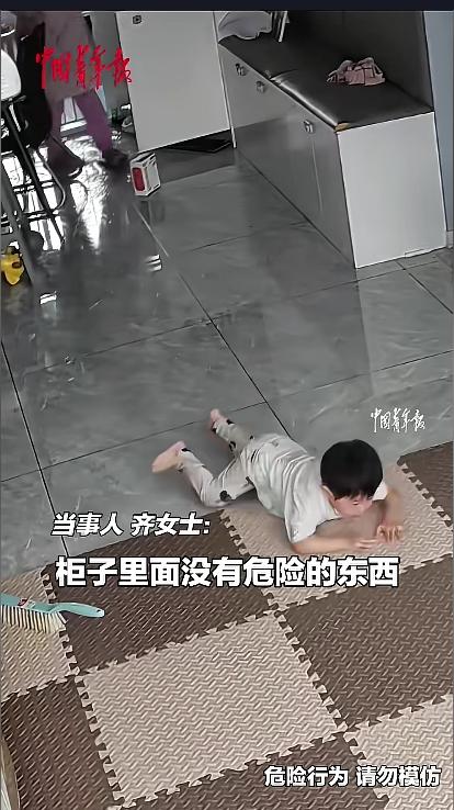 “小宝宝不能没人看!”近日,吉林长春,一位宝妈在厨房做饭,就让自己的宝宝一个人在外面玩儿了。没想到宝宝竟然把洗衣液的瓶子给拧开了,洗衣液洒了一地。宝宝走在上面,摔了好几个跟头,宝妈出来时也没能幸免。网友:真是个悲伤的故事! 据媒体3月16日报道,事发当日,宝妈正在做饭,她想着外面屋里也没有什么危险,就让宝宝一个人在垫子上玩耍了。没想到,宝宝给了她一个难忘的经历。 也不知道他怎么整的,居然把洗衣液的瓶子拧开了,里面的洗衣液流了一地。宝宝从垫子上起来,走到了上面。本来瓷砖就比较滑,沾上洗衣液后,跟踩在油上一样,宝宝当即就摔了。 他尝试向妈妈寻求帮助,可刚试图站起来,又摔了下去。他只好慢慢地尝试,爬回垫子上。可地面实在太滑,他费了好大劲儿也没回去。 宝妈听到孩子的声音,赶紧出来,这一看感觉天都塌了。她也顾不得别的,先小跑过去把宝宝抱到了垫子上,随后又准备回厨房。刚走没两步,宝妈也脚下一滑,摔倒在地。 宝妈说,孩子没事,现在能吃能喝能睡,就是自己的腰和后背有些疼,正准备去医院看看。 网友看后表示,当妈可不能这么大意!虽然摔了几跤没什么事儿,可要是孩子好奇,把洗衣液吃了下去,那可怎么办?在家里,千万不能让孩子脱离自己的视线,像这些比较危险的东西,一定要将它们收好,放到宝宝接触不到的地方! 信息来源:《宝妈做饭的功夫,萌娃“趁机”拧开洗衣液,妈妈发现后“天都塌了”。》中国青年报