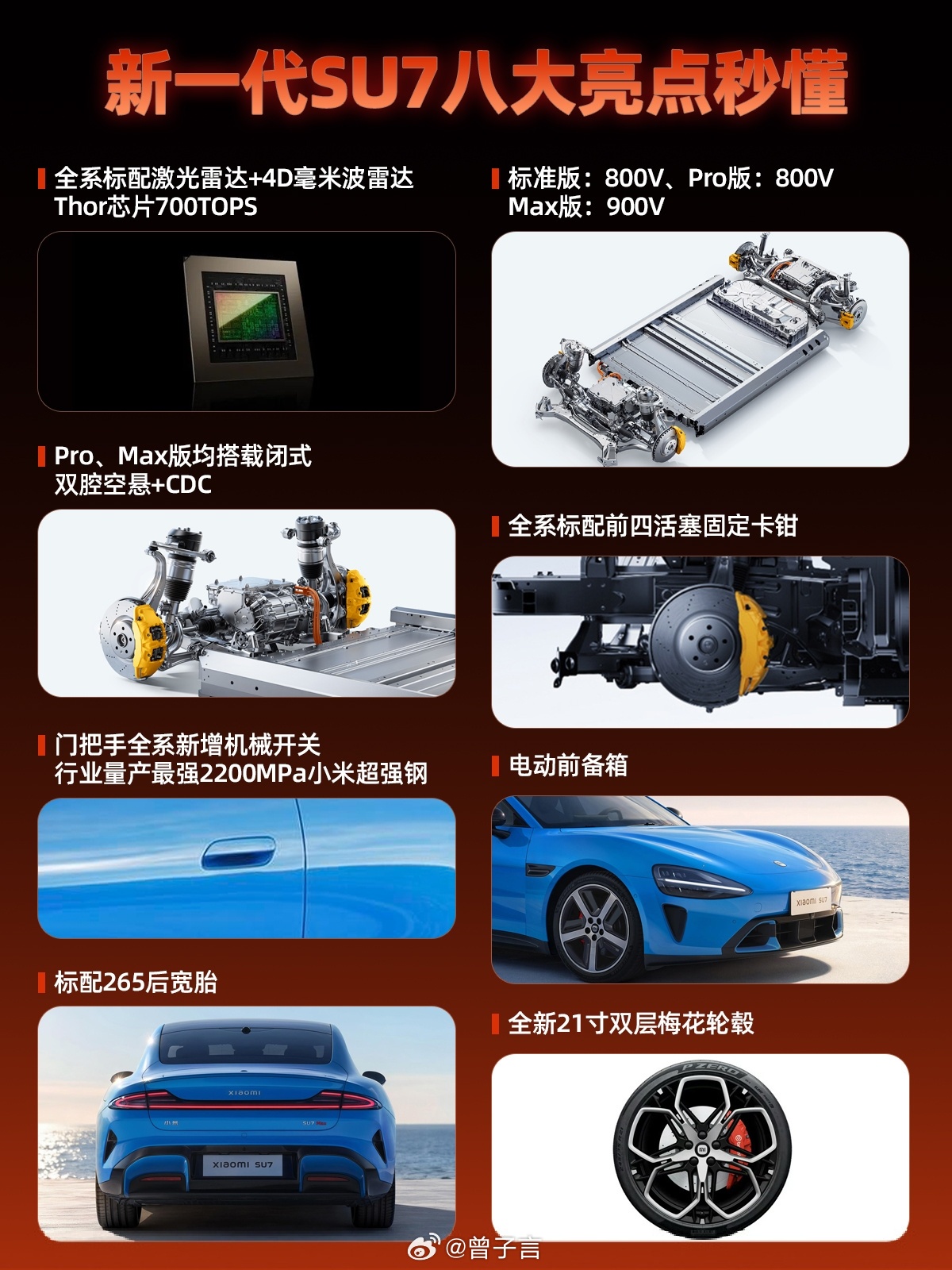 就拿同级别的 Model 3 以及传统豪华油车 BBA 的 34C 来说,不管是质感,配置还是综合体验,可以说全方位胜出,定价还更有诚意。跟老款 SU7 比,动力、续航、安全这几个方面都用上了最新技术,作为 SU7 Max 创始版车主,我看完也非常羡慕。