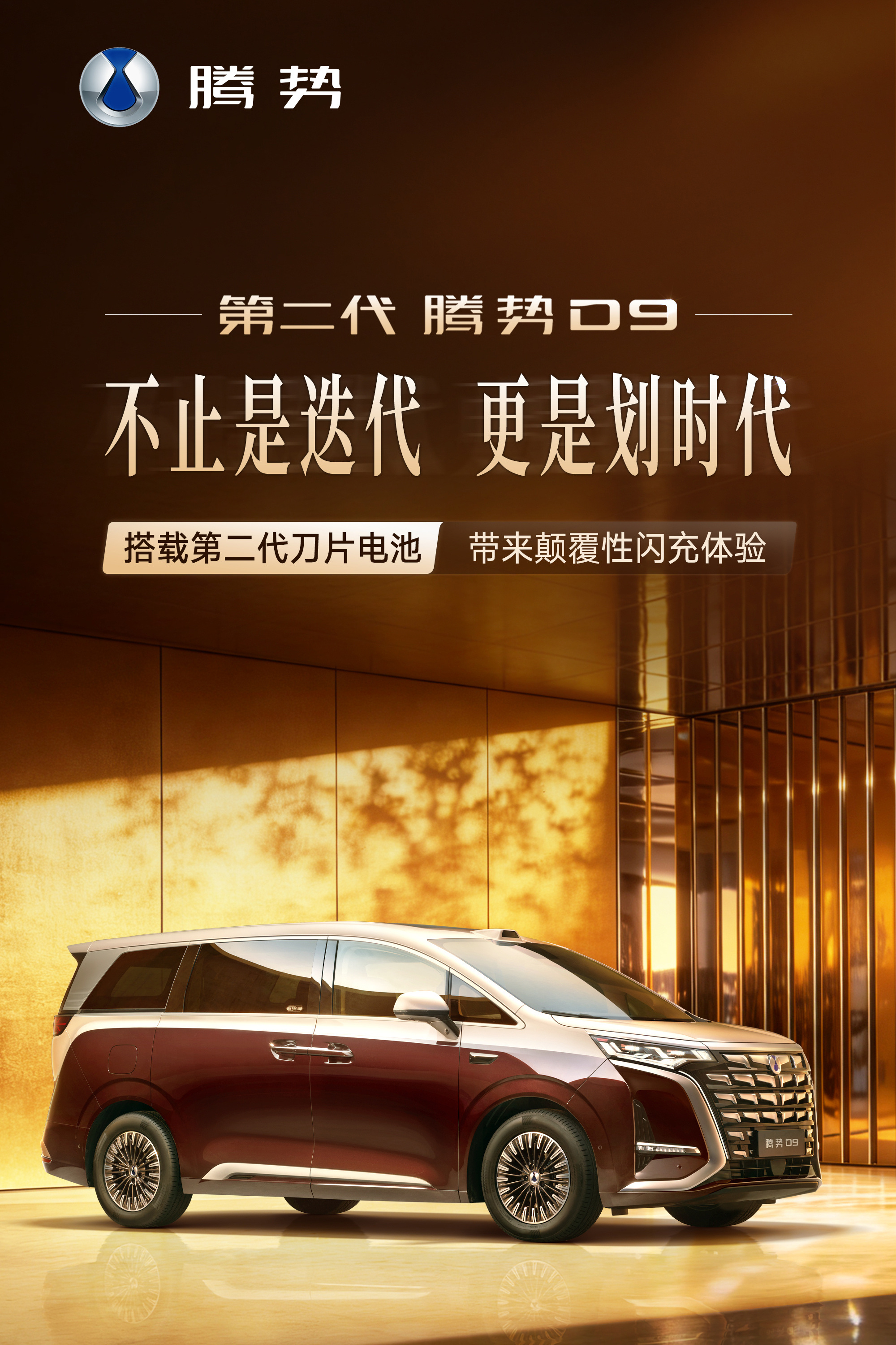 新款腾势D9预告,将搭载第二代刀片电池和闪充技术,继续提供插混和纯电车型。大V聊