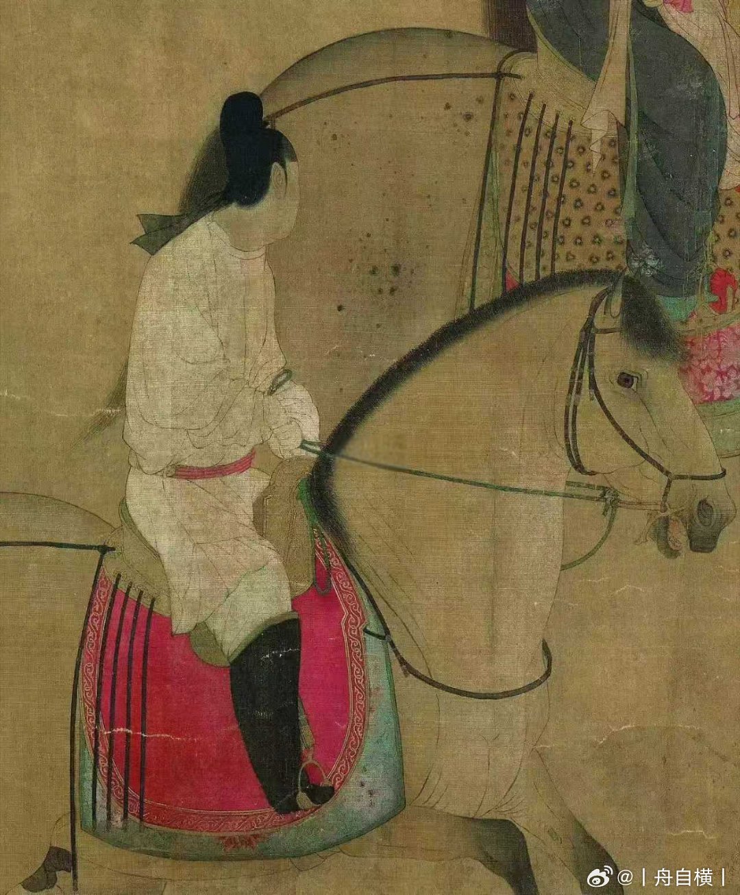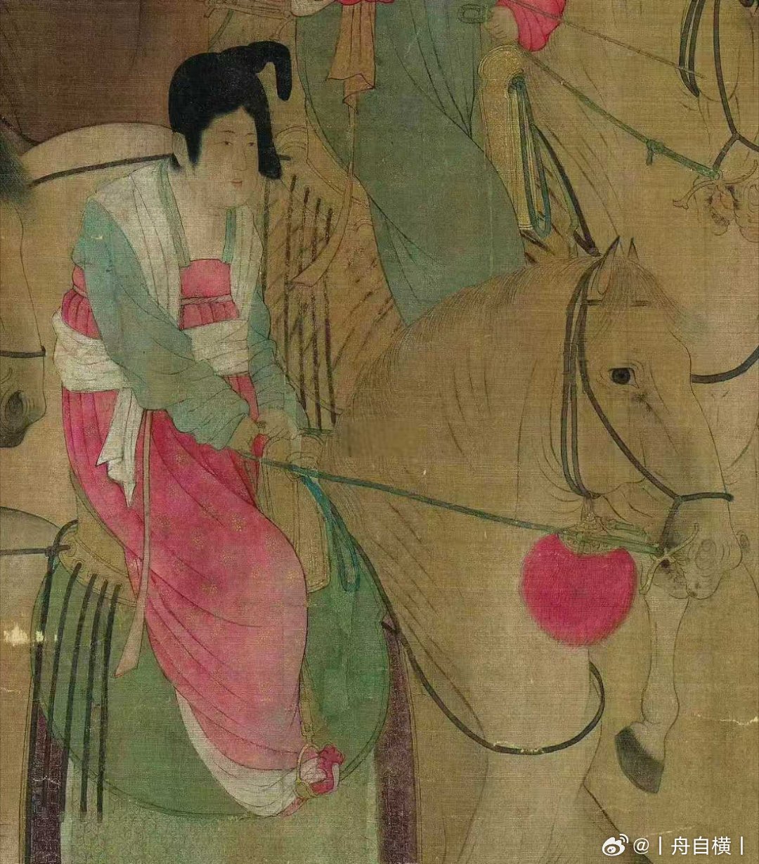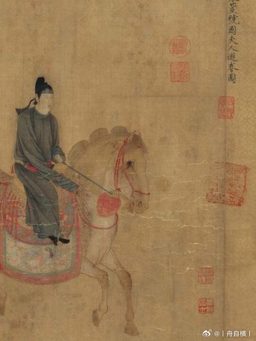 画中哪位是虢国夫人至今仍是学术争议点,主要有首骑男装、中心贵妇、骑三花马者三种观点。