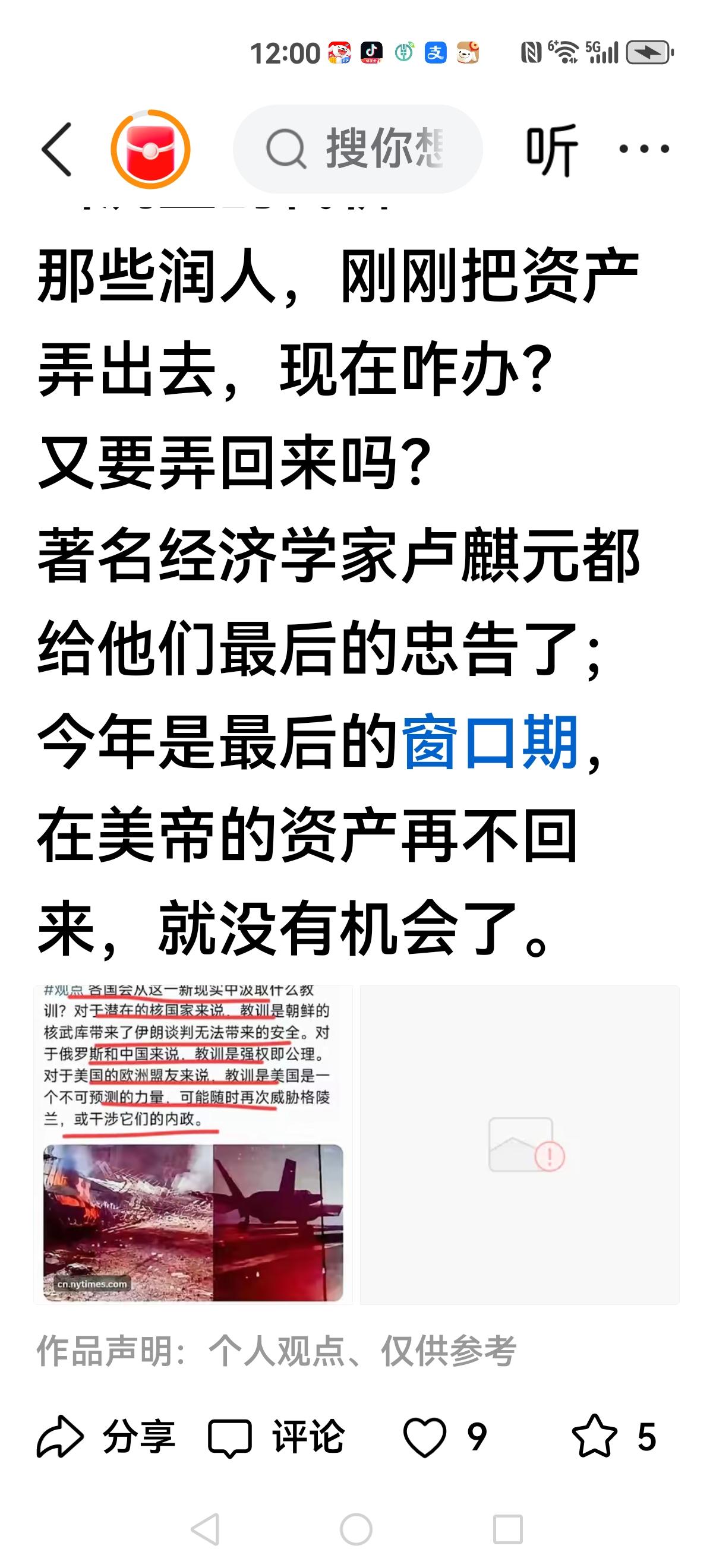 【卢麒元发出警告】 那些曾经润出去的人 要注意了,卢麒元发出警告,今年是最后的窗口期,如果在美资产再不回来,就没有机会了。 这是不是让潘总左右为难?这是立功还是随意说说? 一直预测失败的卢麒元这次是不是又要翻车?还是神预言?