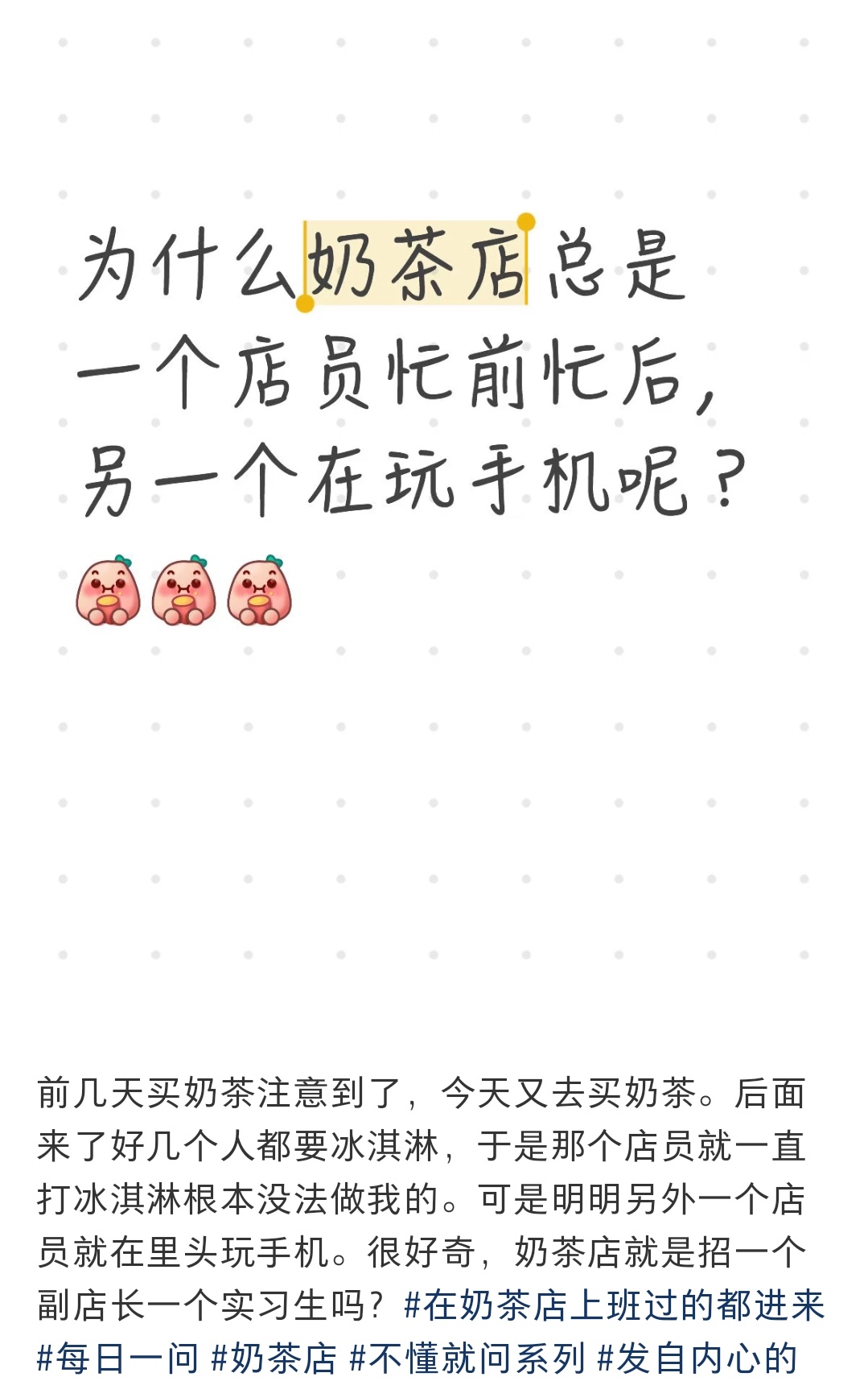 哈哈哈客人疑惑也正常,不知道那个玩手机的其实也在工作