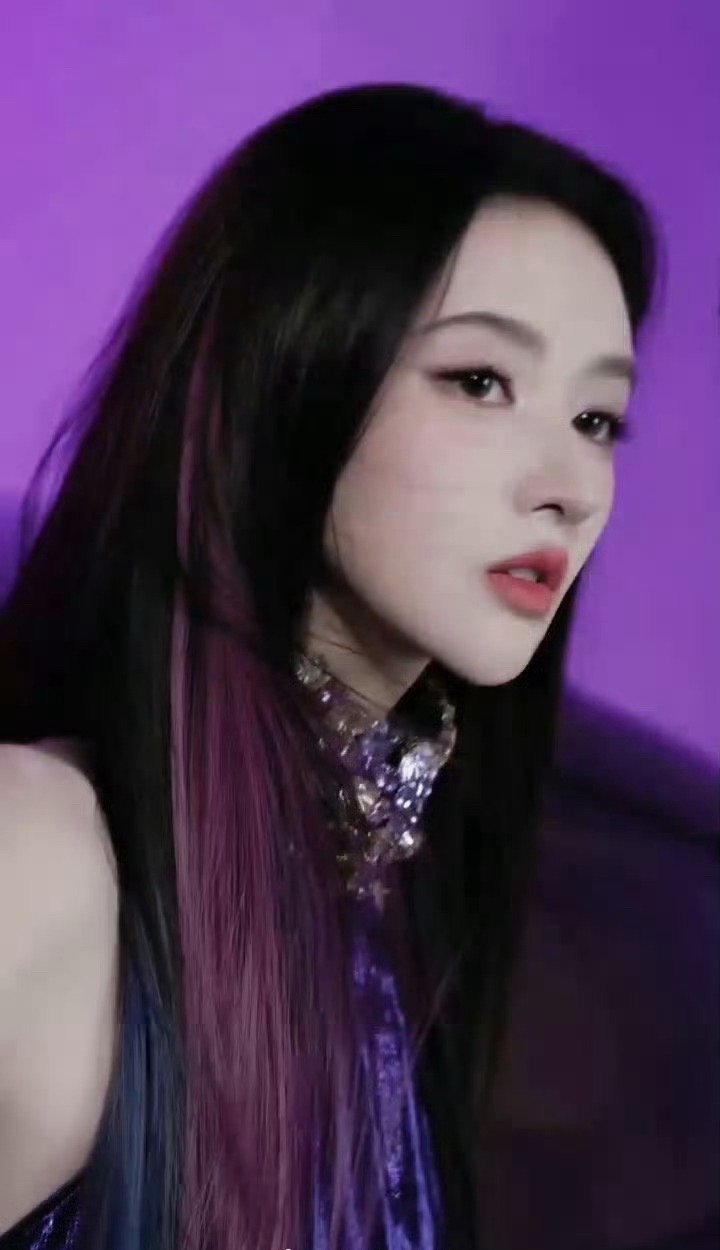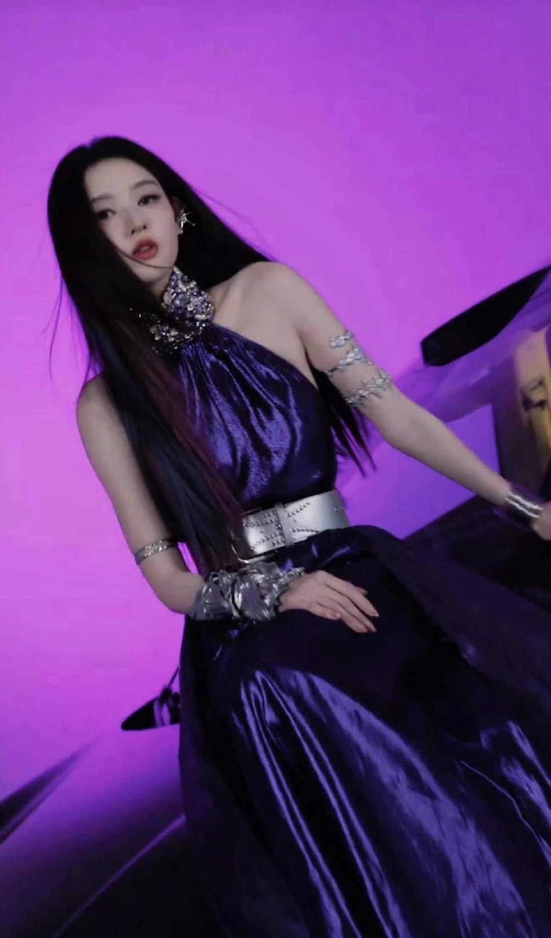 王玉雯暗夜紫氛围感王玉雯紫色缎面流光裙 王姐这个妆造不要太杀我了