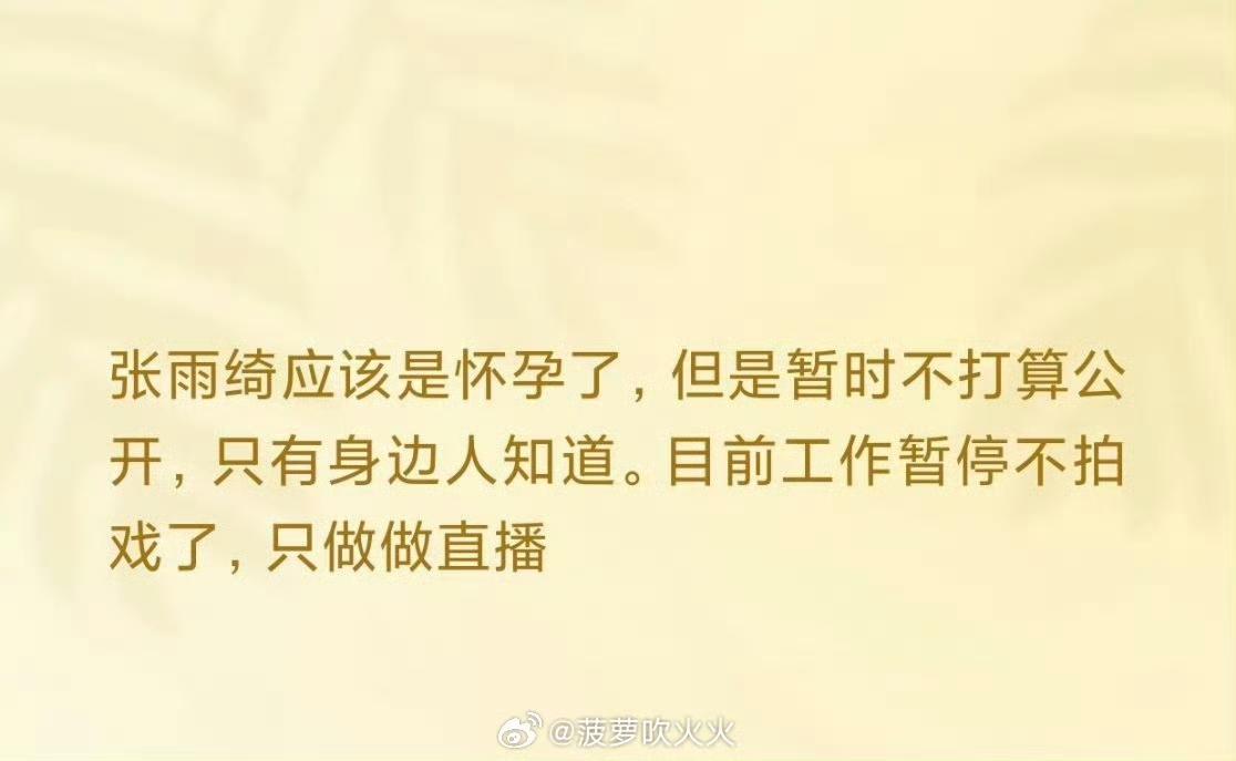 内娱真的太敢写了!张雨绮前脚争议还没消停,后脚就被工作人员爆料,不拍戏只专心直播,竟是因为怀孕养胎。代孕风波未平又添新瓜,她本人和团队至今沉默不回应。镜头前状态利落,看不出孕相,可工作安排又对得上爆料,这剧情越绕越乱,到底是真有喜事,还是转移视线的操作,网友都看懵了!