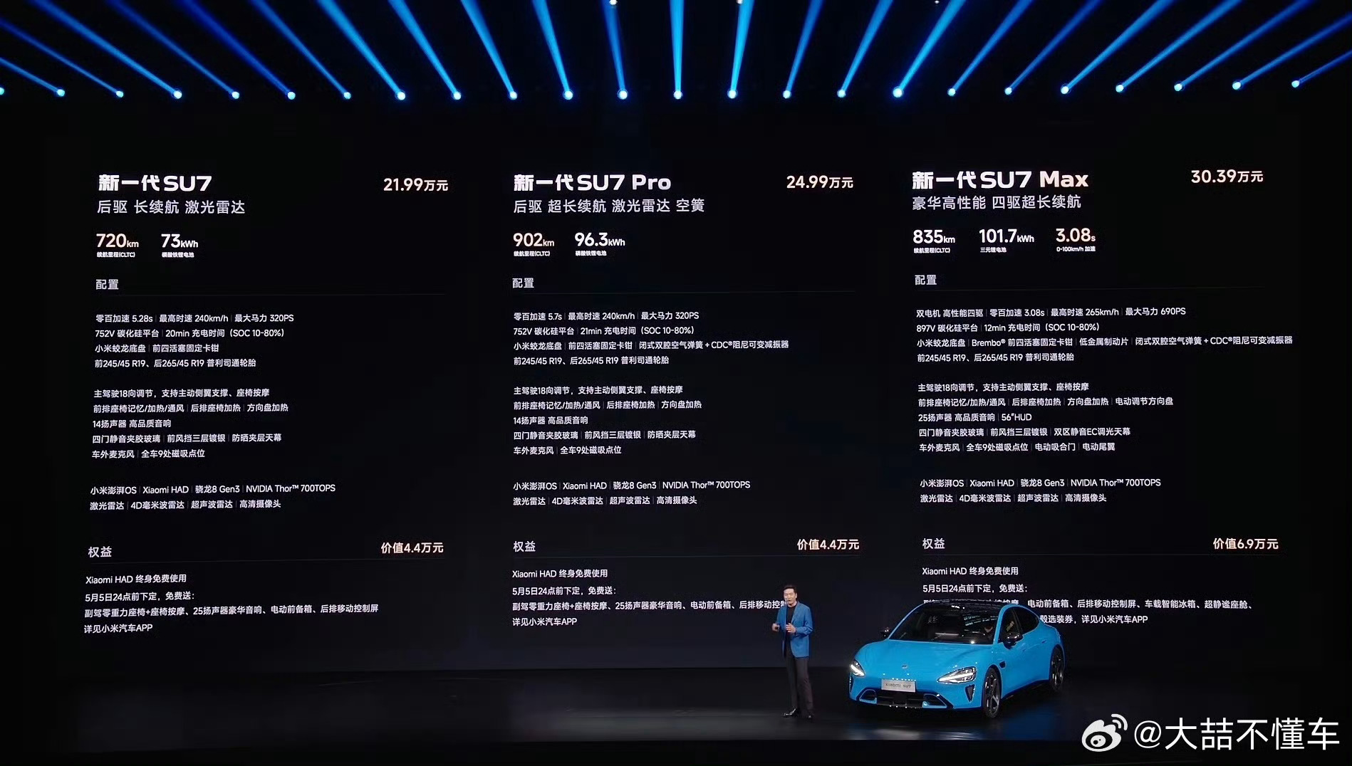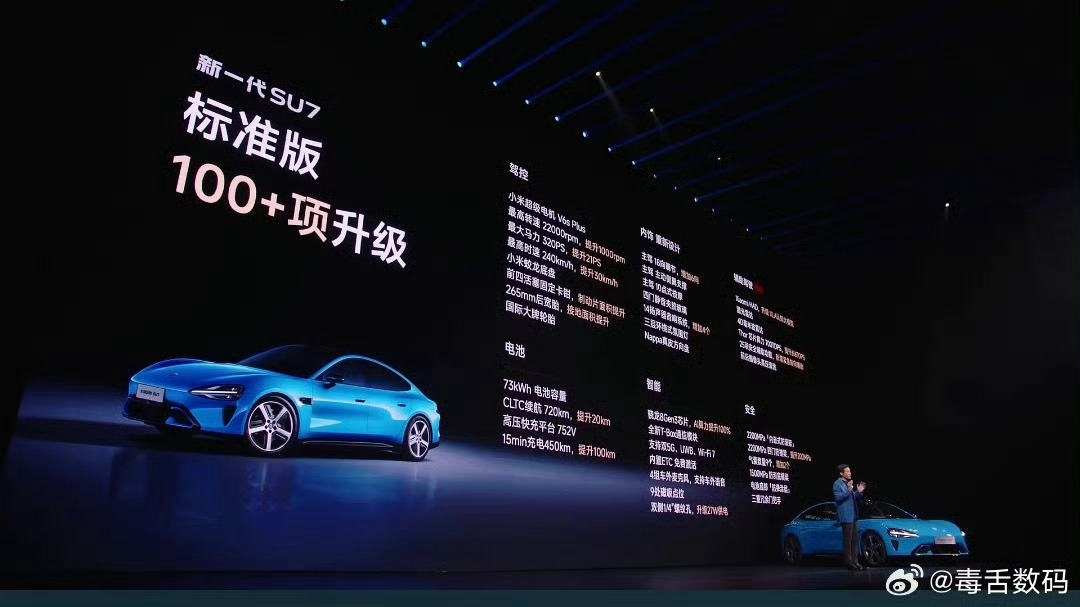 小米新SU7起售价21.99万元标准版 21.99万元Pro版 24.99万元Max版 30.39万元