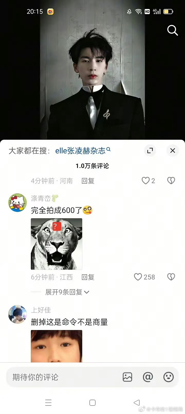 张凌赫这图是谁给拍的评论区粉丝都人删掉