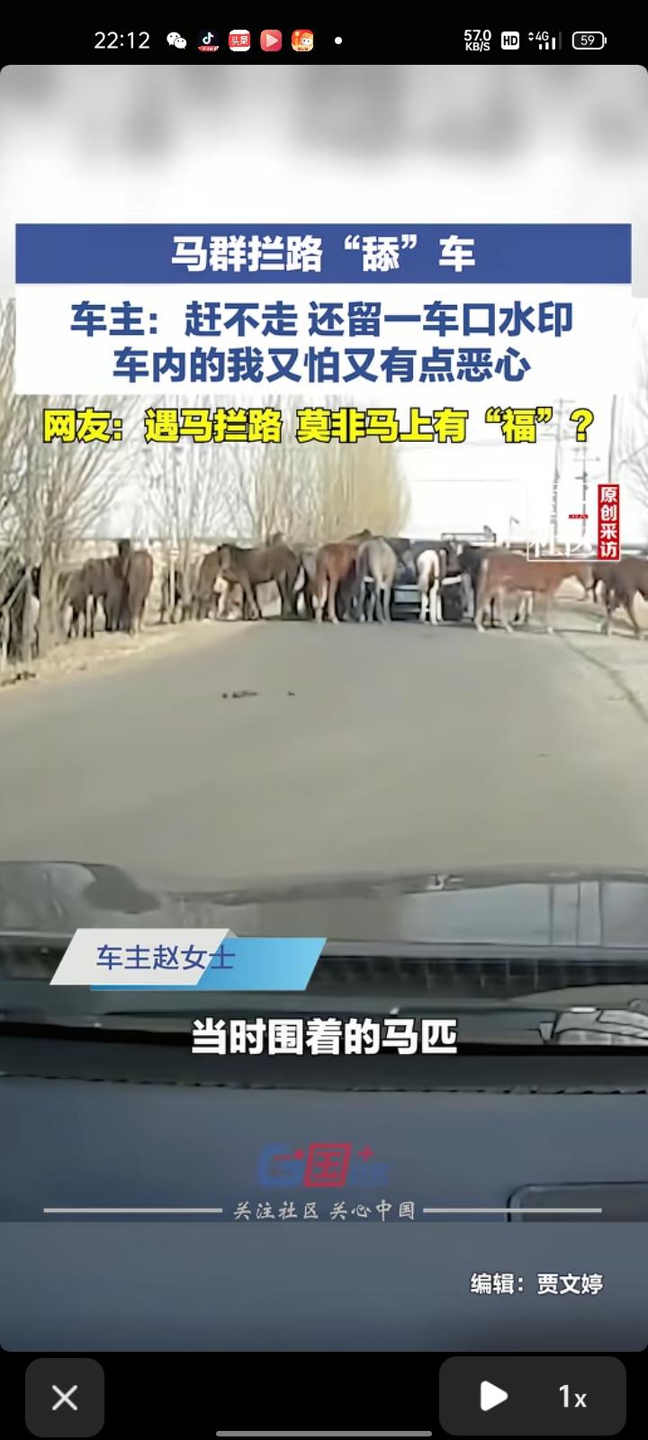 3月10日,内蒙古乌兰察布.网友发视频称,在路上遇到一群马拦路“舔”车,留下了很