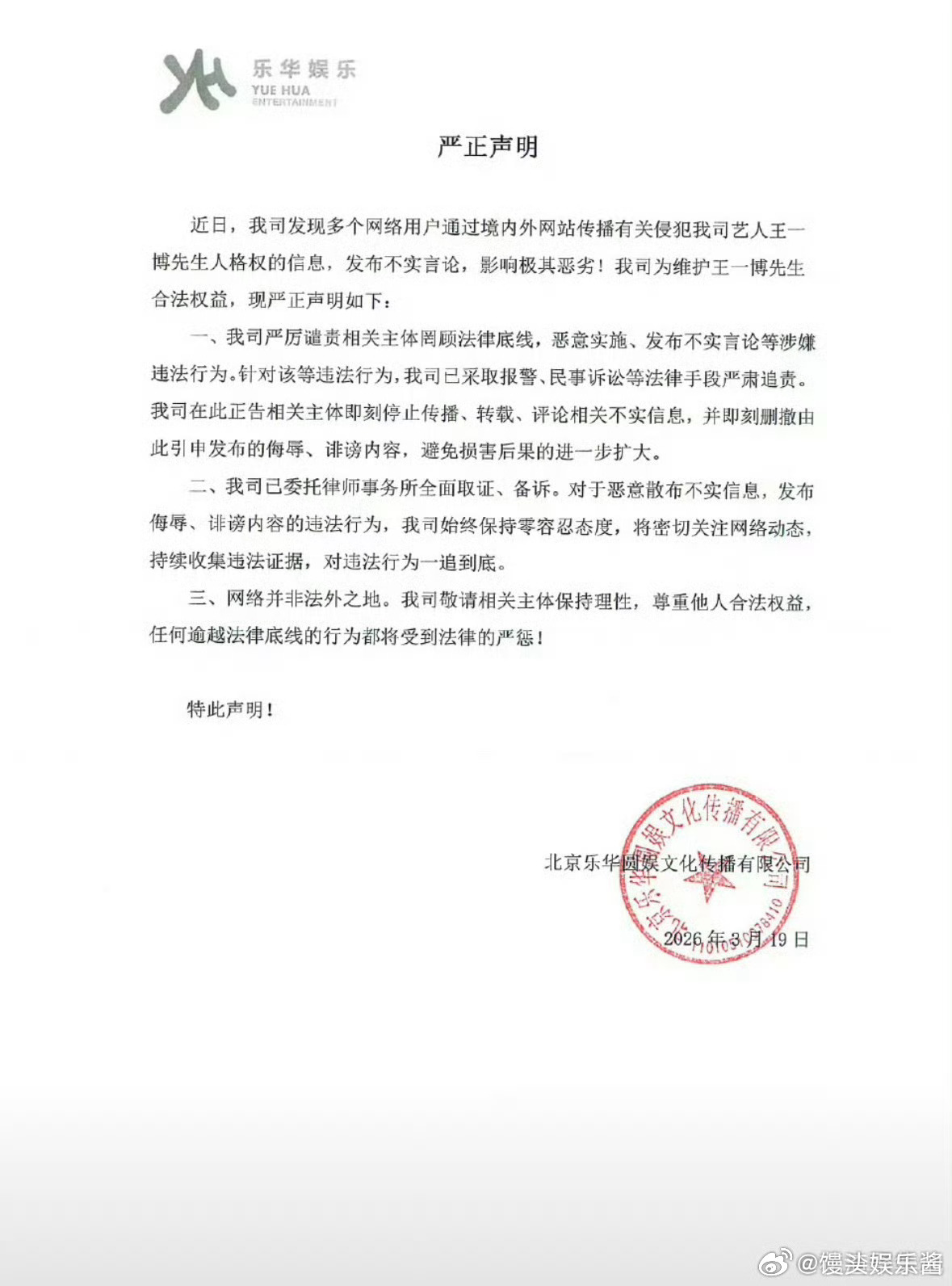 疑似王一博私生爆料乐华辟谣了王一博恋情