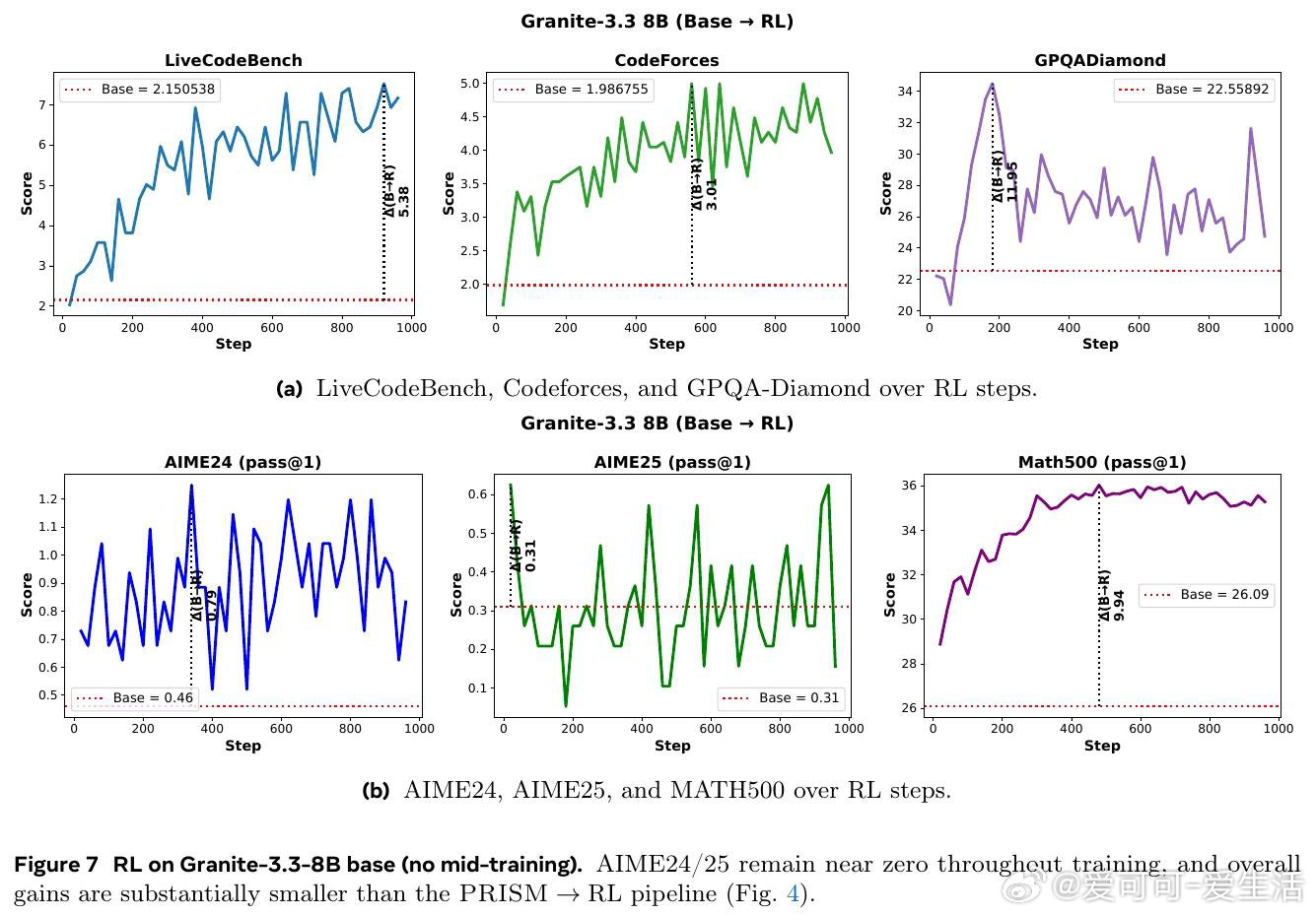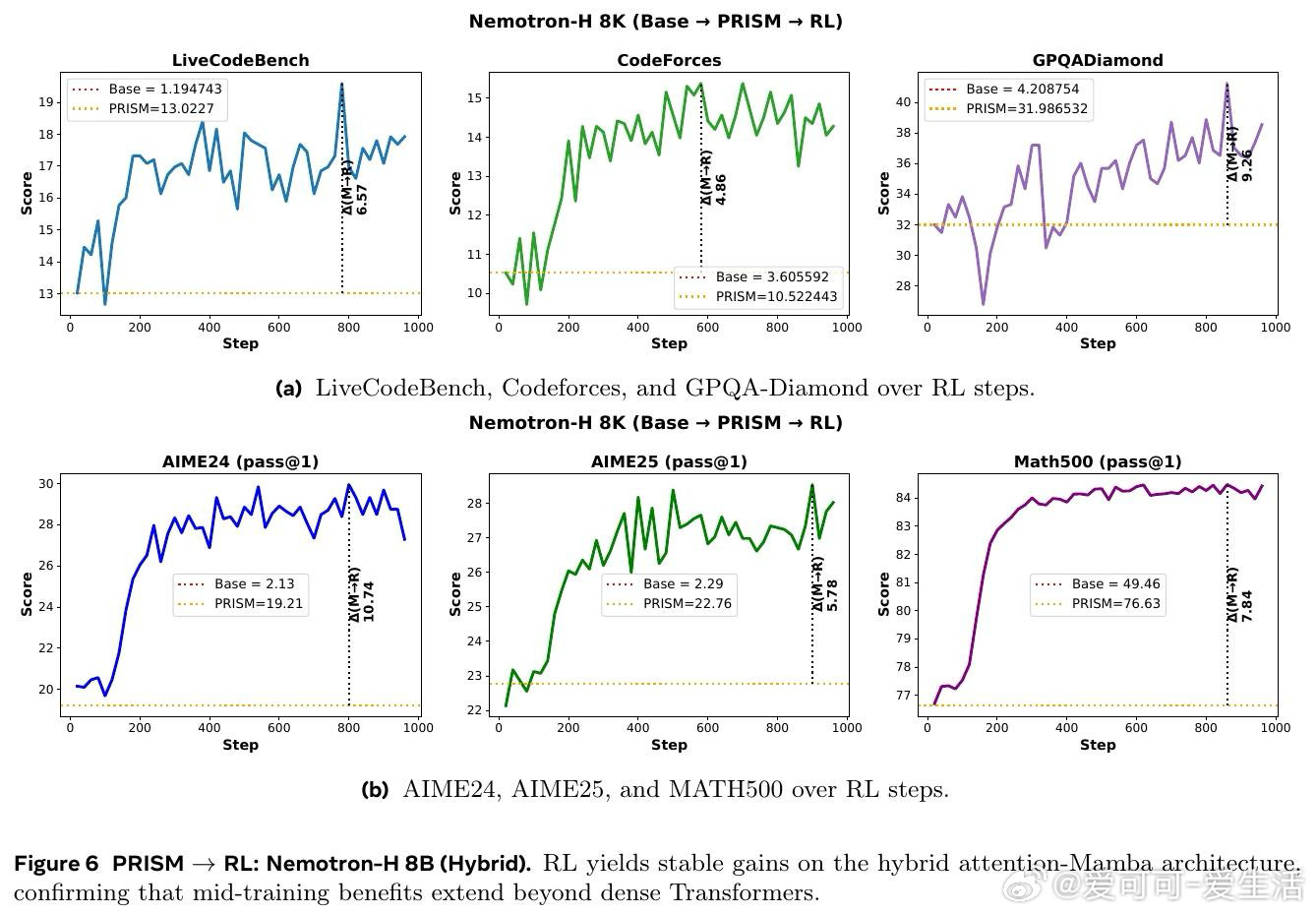 大型语言模型在预训练后,直接接受强化学习(RL)往往收效甚微——AIME数学题的得分接近于零。业界普遍在预训练与RL之间插入一个「中间训练」阶段,却缺乏系统性指引:该用什么数据、多少量、在何时介入,以及它究竟如何影响后续RL?根本原因在于,这三个阶段的相互作用从未被跨模型、跨架构地严格对照研究过。