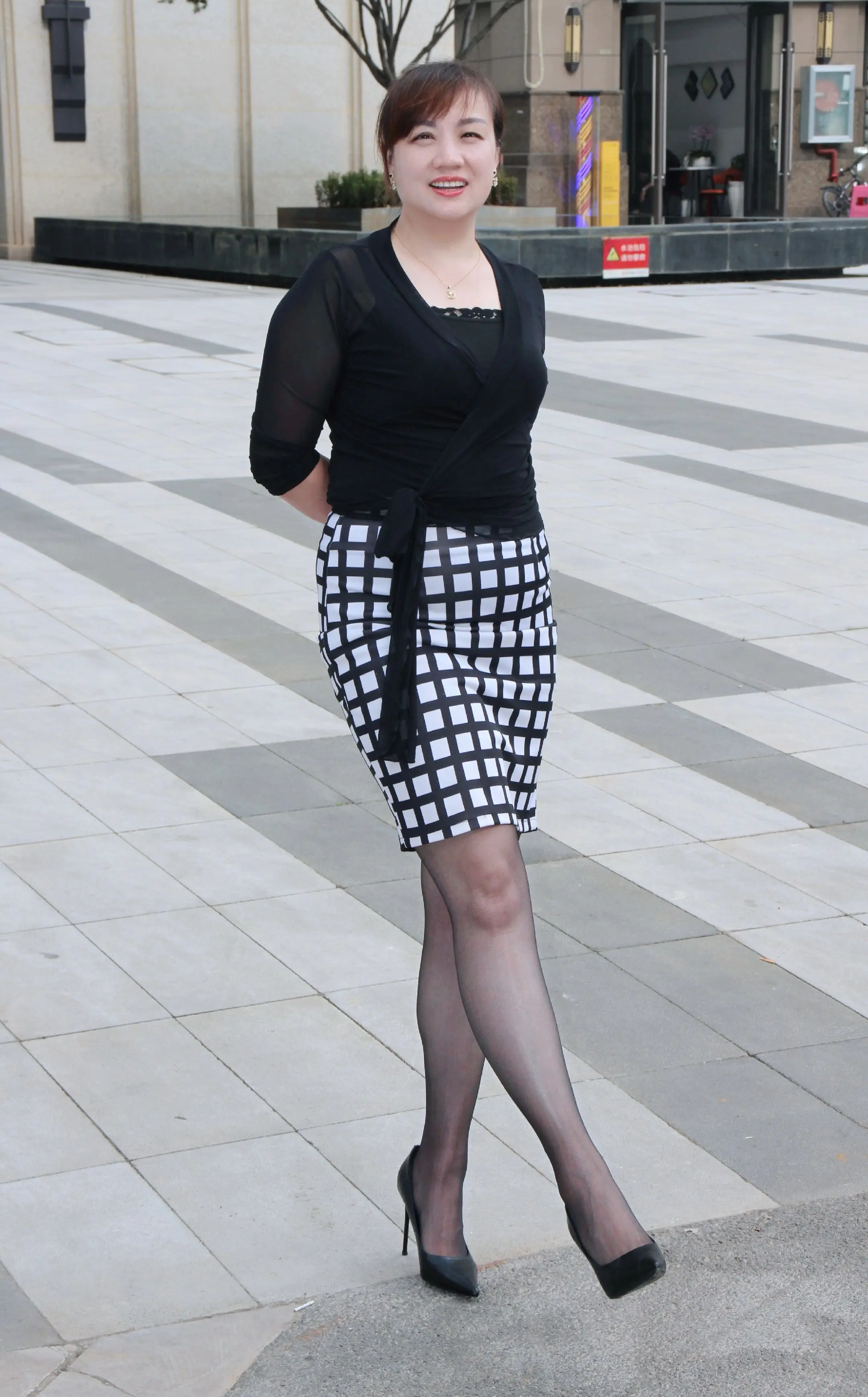 高跟鞋穿搭 短裙穿搭 街拍 潦浒古镇