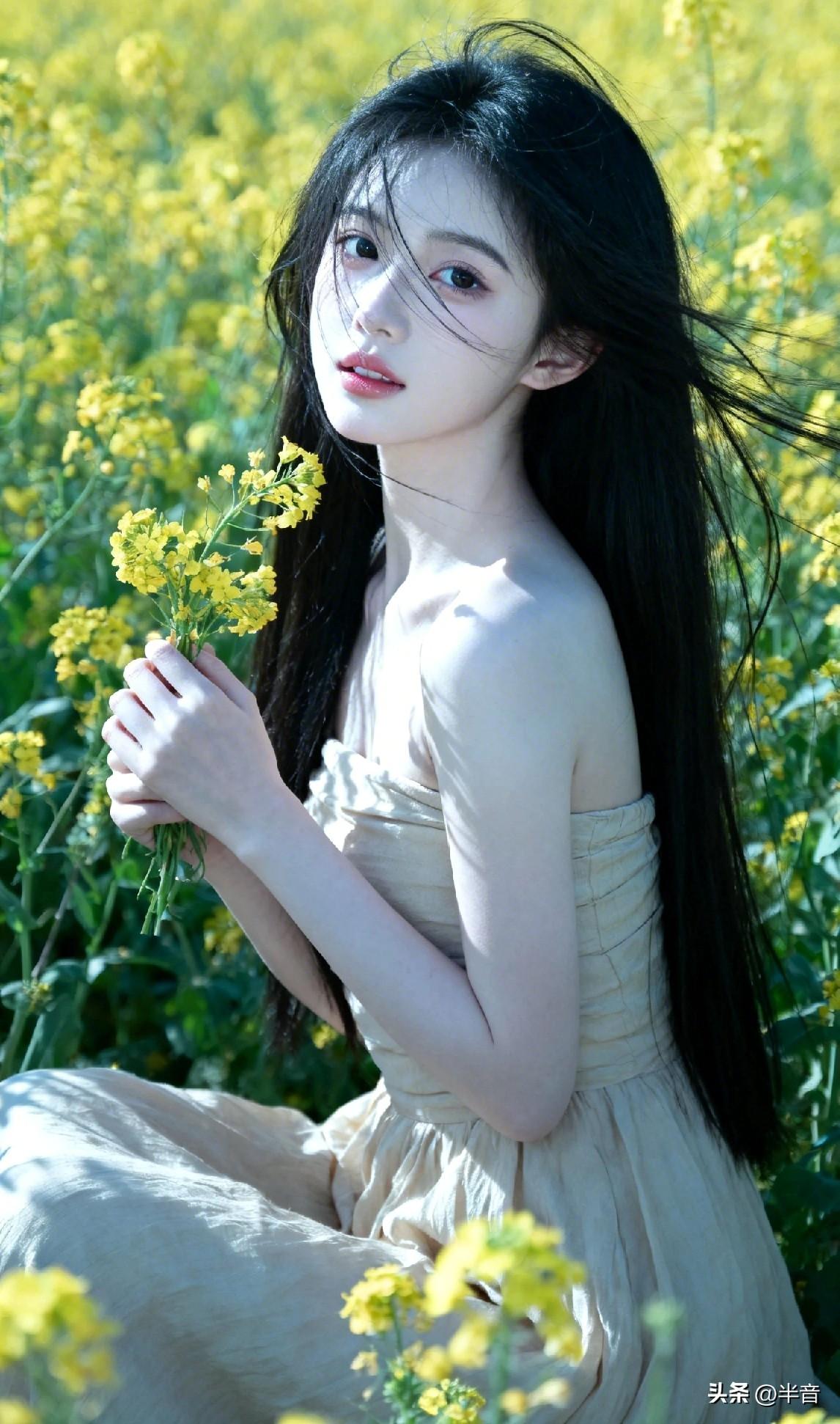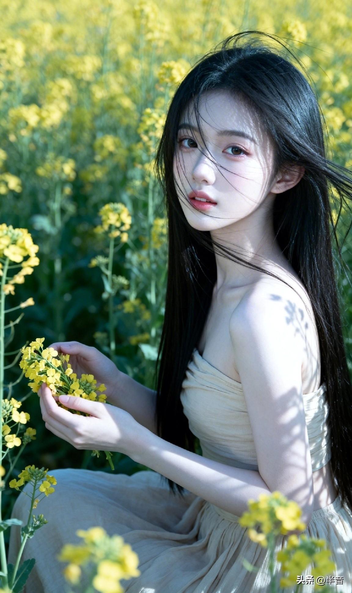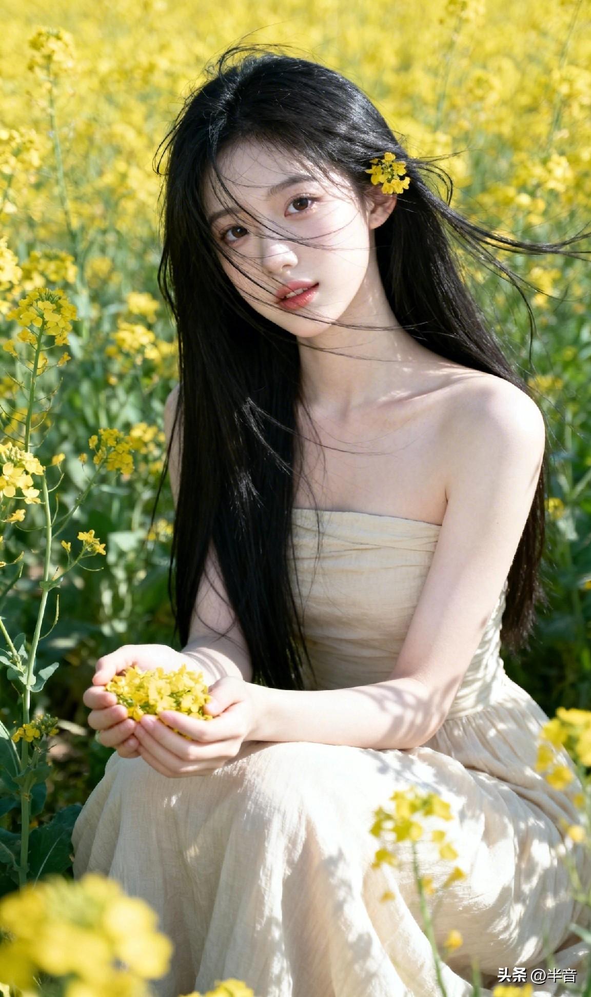 春已至,花已开🌿 一身素衣,半亩花田 风动,心动