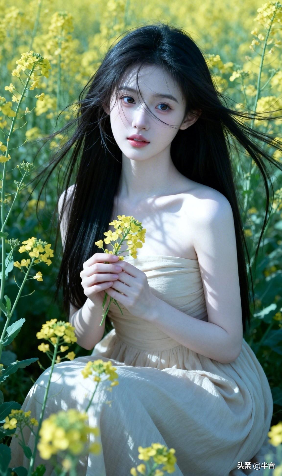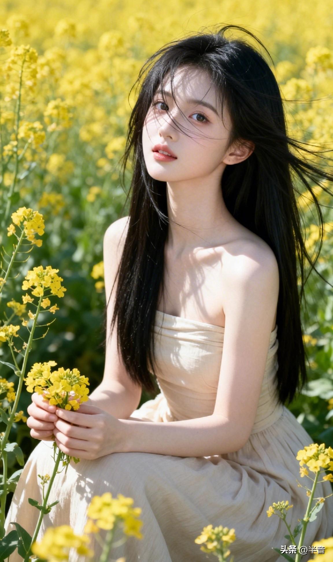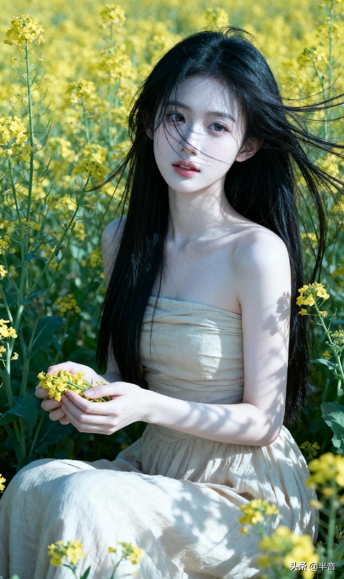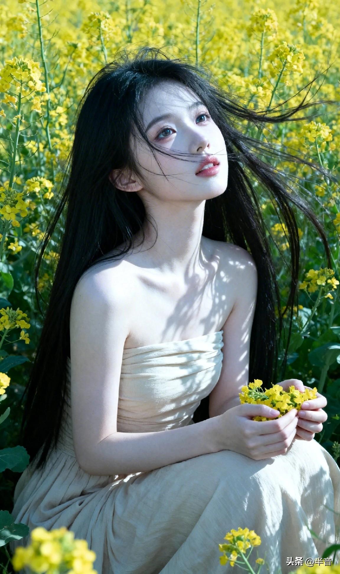 春已至,花已开🌿 一身素衣,半亩花田 风动,心动