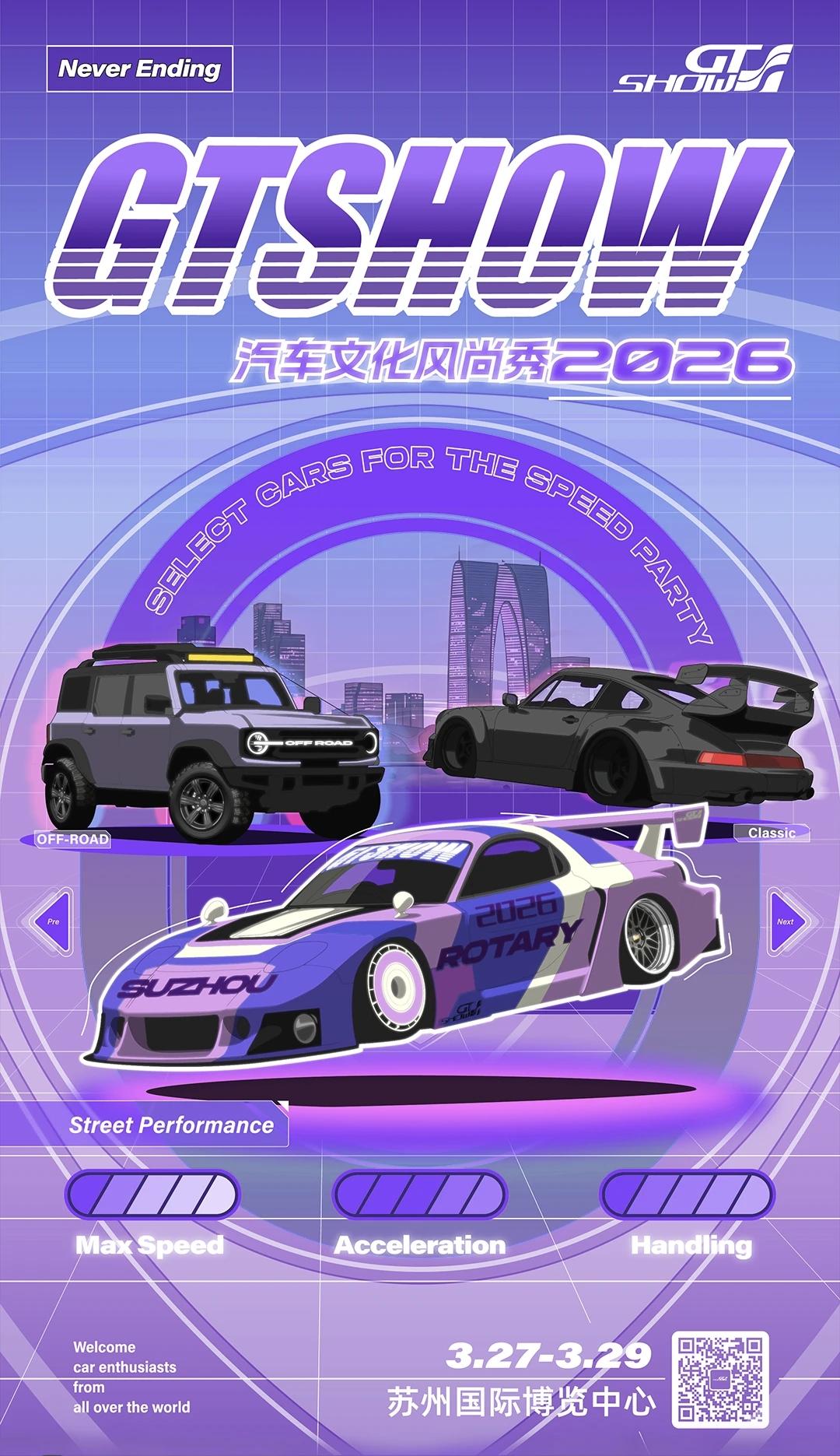 GT SHOW的魅力在于它是一个极致多元的潮改文化秀,3.27苏州,很荣幸与余文乐先生及各位前辈同行,欢迎大家一起加入到这个玩家超级嘉年华!