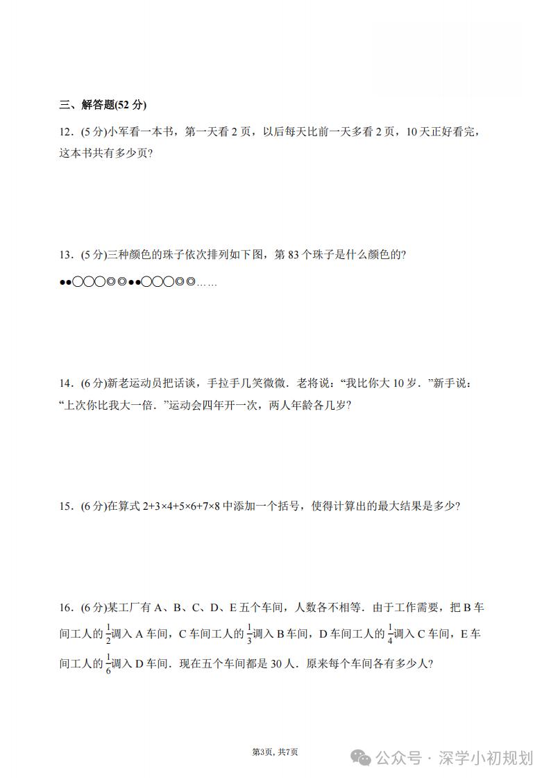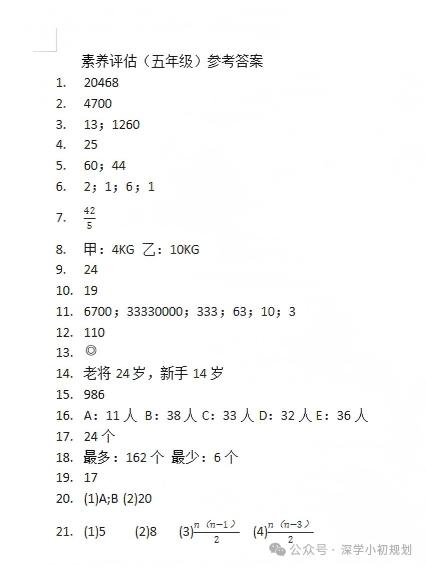 这是深圳市福田区鲲鹏人才培养方案系列小学五年级数学素养评估卷,有含金量啊,有兴趣的可以拿去试一试。(资料来自公众号深学小初规划)教育