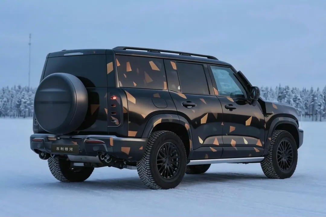 之前银河战舰的概念车,车辆的体量感还是很大,整个造型还是延续了路虎卫士的风格,只是设计细节换成了银河自己的涟漪元素。不过姿态上长前悬、短L113、加上备胎箱设计,所以主要还是一个硬派风格。