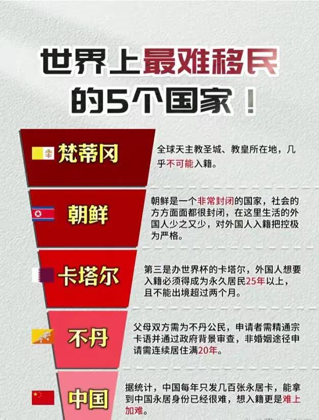 还好我们国家是属于比较难移民的国家之一,不然每年肯定会有很多外国人想移民中国,要