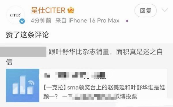 如何看待呈仕官号下场点赞叶舒华粉丝给赵美延的评论