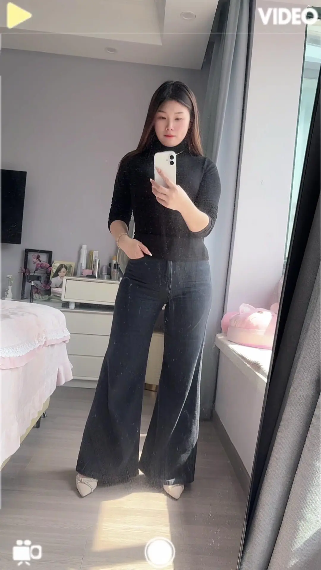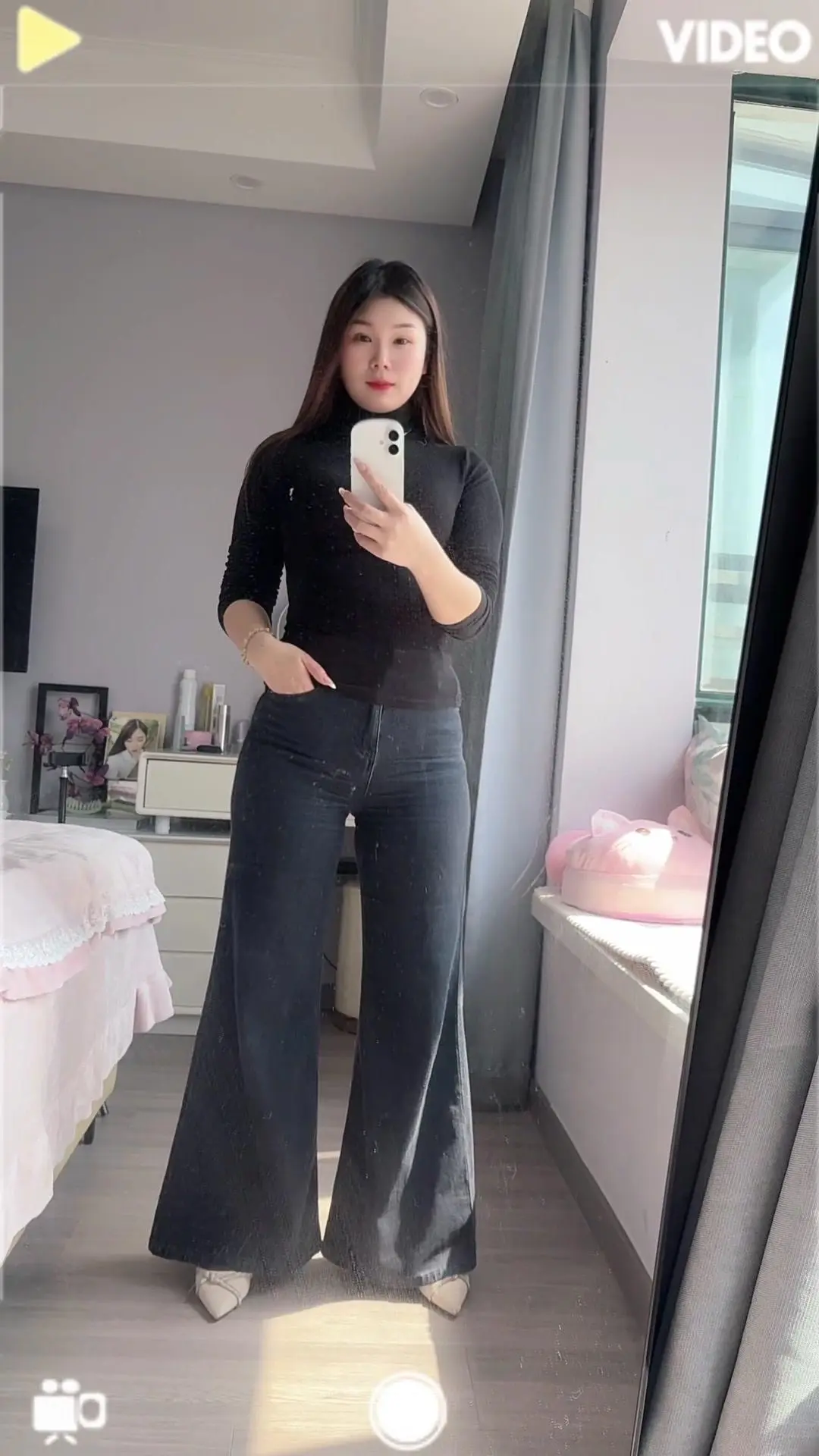 2️⃣上下身呼应:上衣选宽松款遮肉,下装选修身款显腿直,或者用同色系穿搭营造整体感;避免上宽下宽的“米其林效应”,用短款外套罩住屁股,效果绝了~