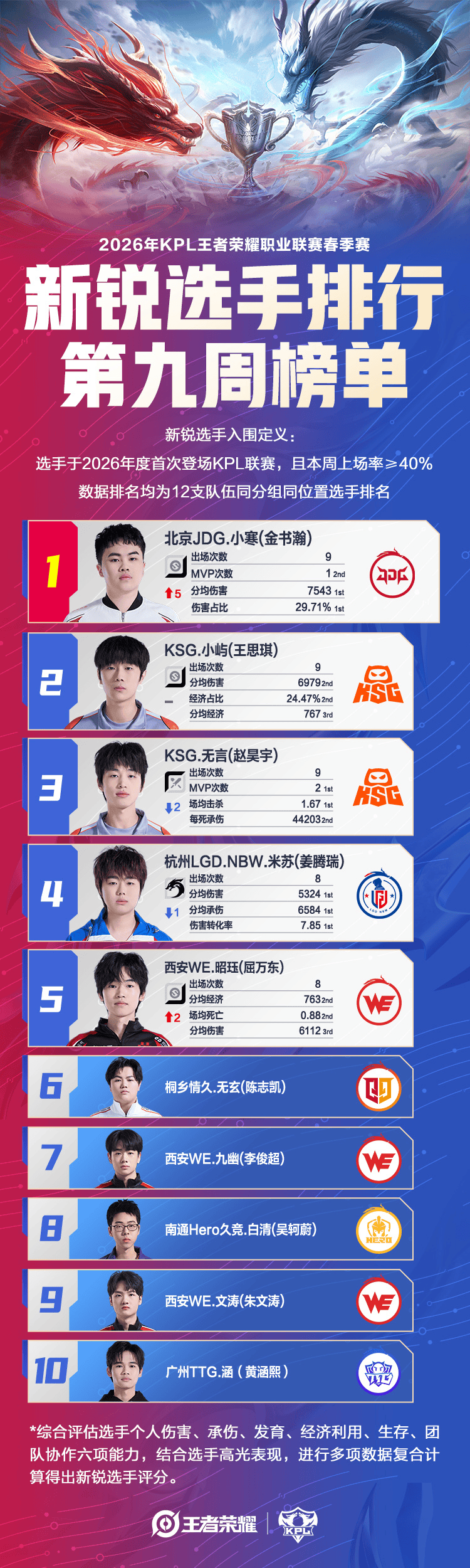 2026KPL春季赛[新锐选手排行第九周榜单]公布!