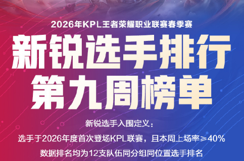 新锐选手入围定义:选手于2026年度首次登场KPL联赛,且本周上场率≥40%;